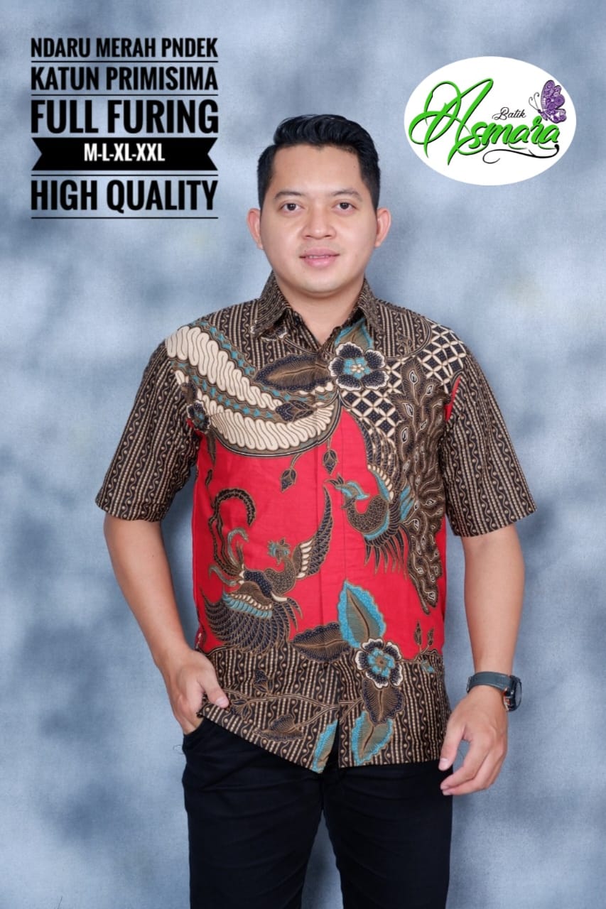 NDARU MERAH ASMARA KEMEJA BATIK PRIA SOLO LENGAN PANJANG PENDEK LAPIS FURING