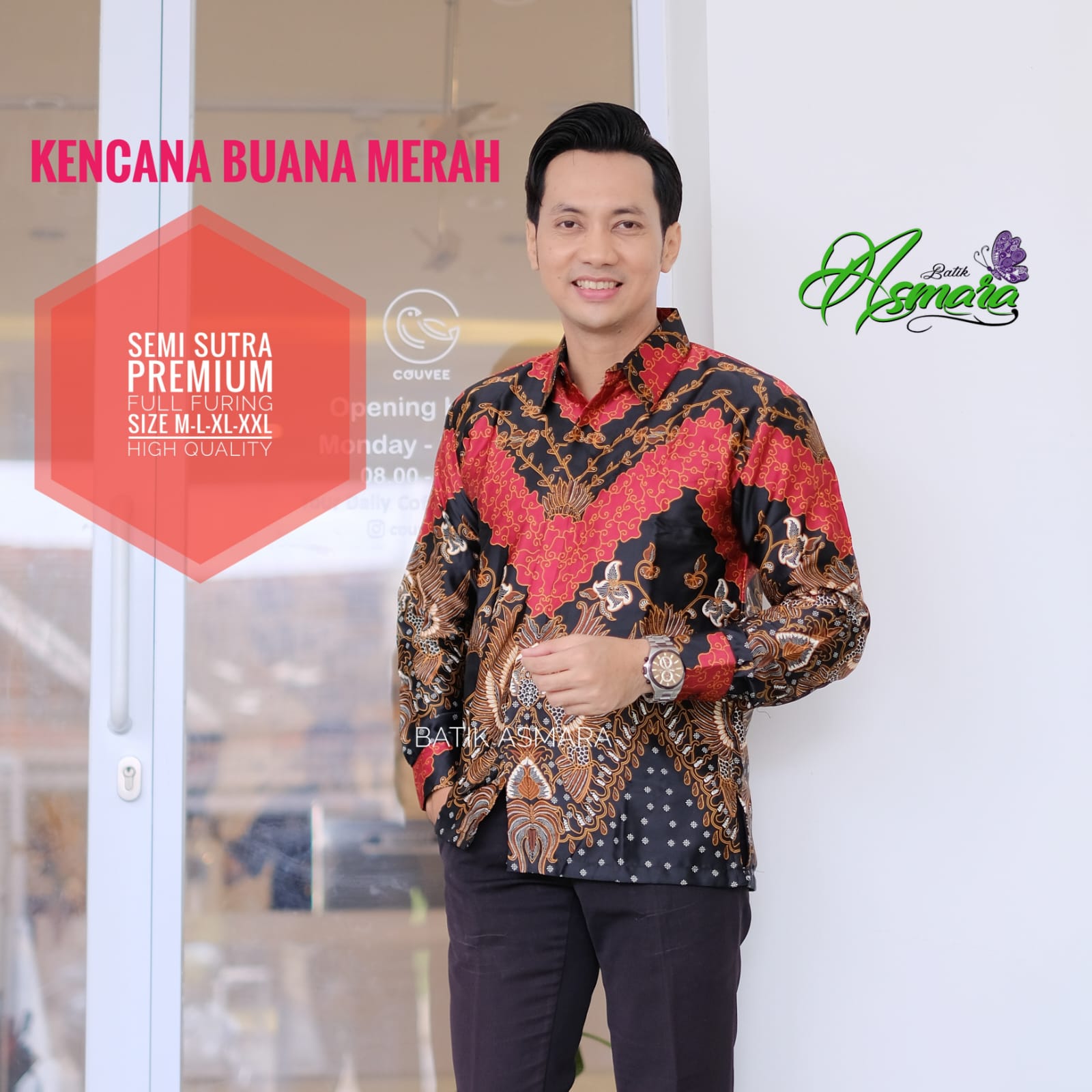 KENCANA BUANA MERAH ASMARA KEMEJA BATIK PRIA SOLO LENGAN PANJANG PENDEK LAPIS FURING