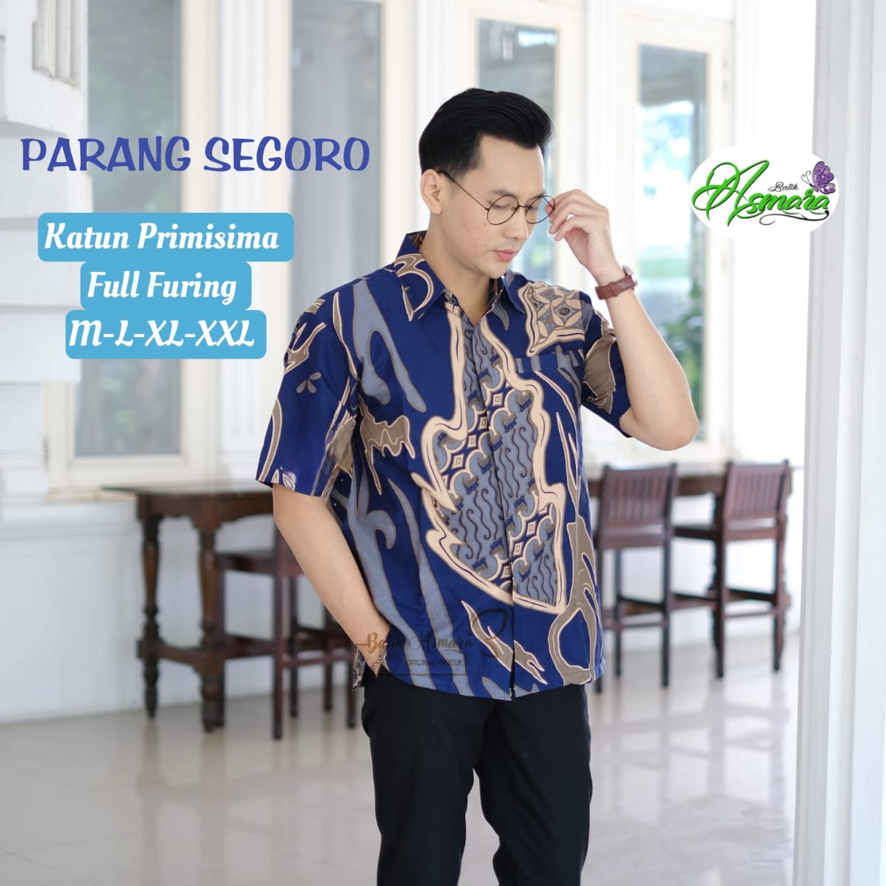 ANTASENA BIRU ASMARA KEMEJA BATIK PRIA SOLO LENGAN PANJANG PENDEK LAPIS FURING