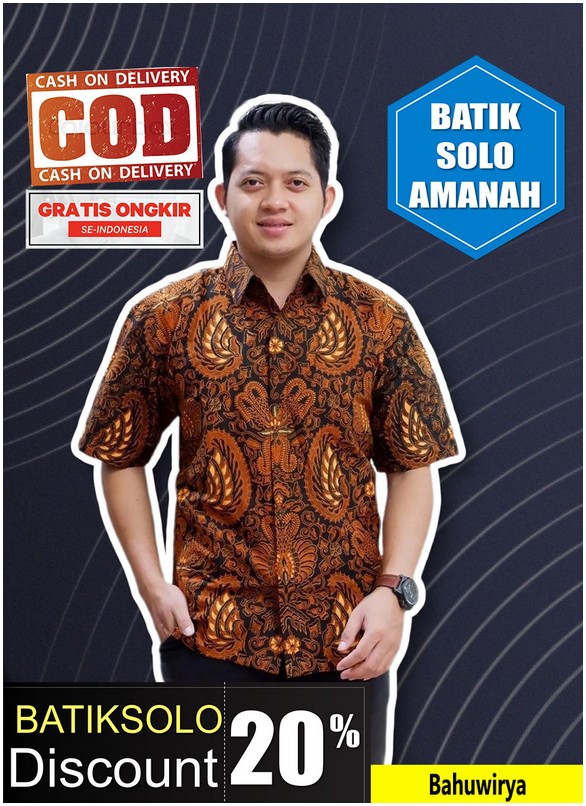 BAHUWIRYA BATIKSOLOAMANAH KEMEJA BATIK PRIA SOLO LENGAN PENDEK LAPIS FURING
