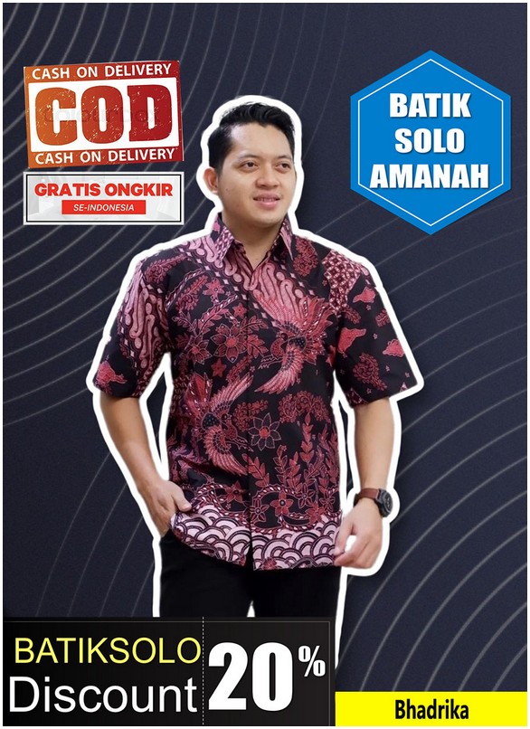BHADRIKA BATIKSOLOAMANAH KEMEJA BATIK PRIA SOLO LENGAN PENDEK LAPIS FURING
