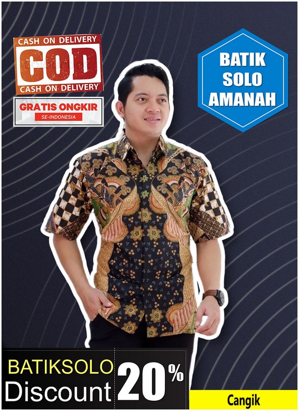 CANGIK BATIKSOLOAMANAH KEMEJA BATIK PRIA SOLO LENGAN PENDEK LAPIS FURING