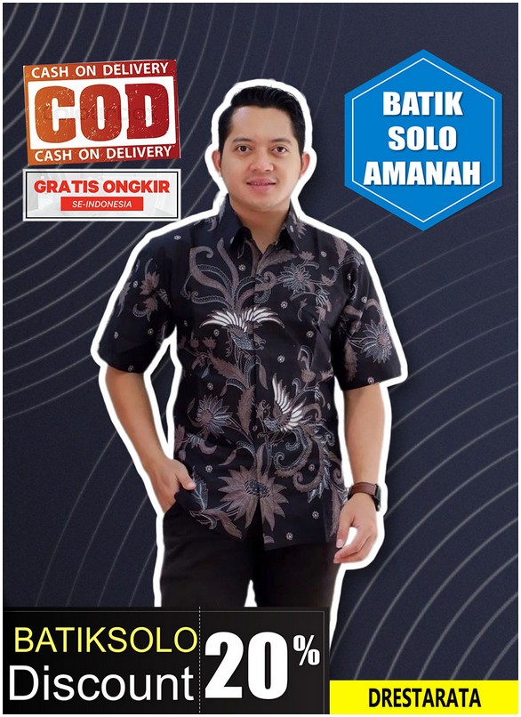 DRESTARATA BATIKSOLOAMANAH KEMEJA BATIK PRIA SOLO LENGAN PENDEK LAPIS FURING