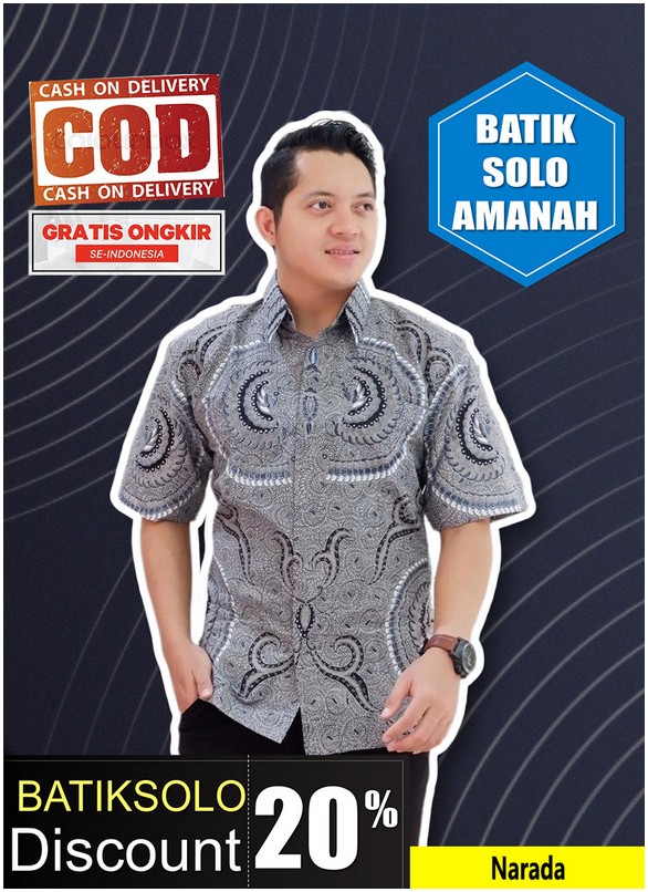 NARADA BATIKSOLOAMANAH KEMEJA BATIK PRIA SOLO LENGAN PENDEK LAPIS FURING