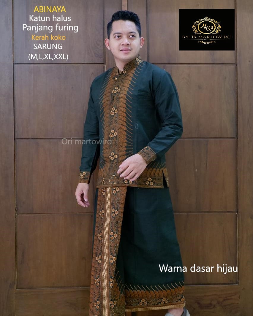 ABINAYA HIJAU MARTOWIRO KOKO SARUNG BATIK PRIA SOLO LENGAN PANJANG LAPIS FURING KATUN HALUS