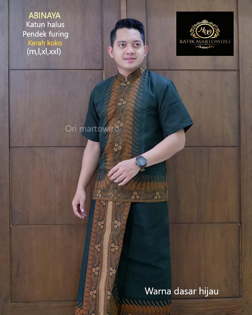 ABINAYA HIJAU MARTOWIRO KOKO SARUNG BATIK PRIA SOLO LENGAN PENDEK LAPIS FURING KATUN HALUS