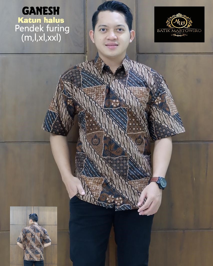 GANESH MARTOWIRO BATIKSOLOAMANAH KEMEJA BATIK PRIA SOLO LENGAN PENDEK LAPIS FURING KATUN HALUS
