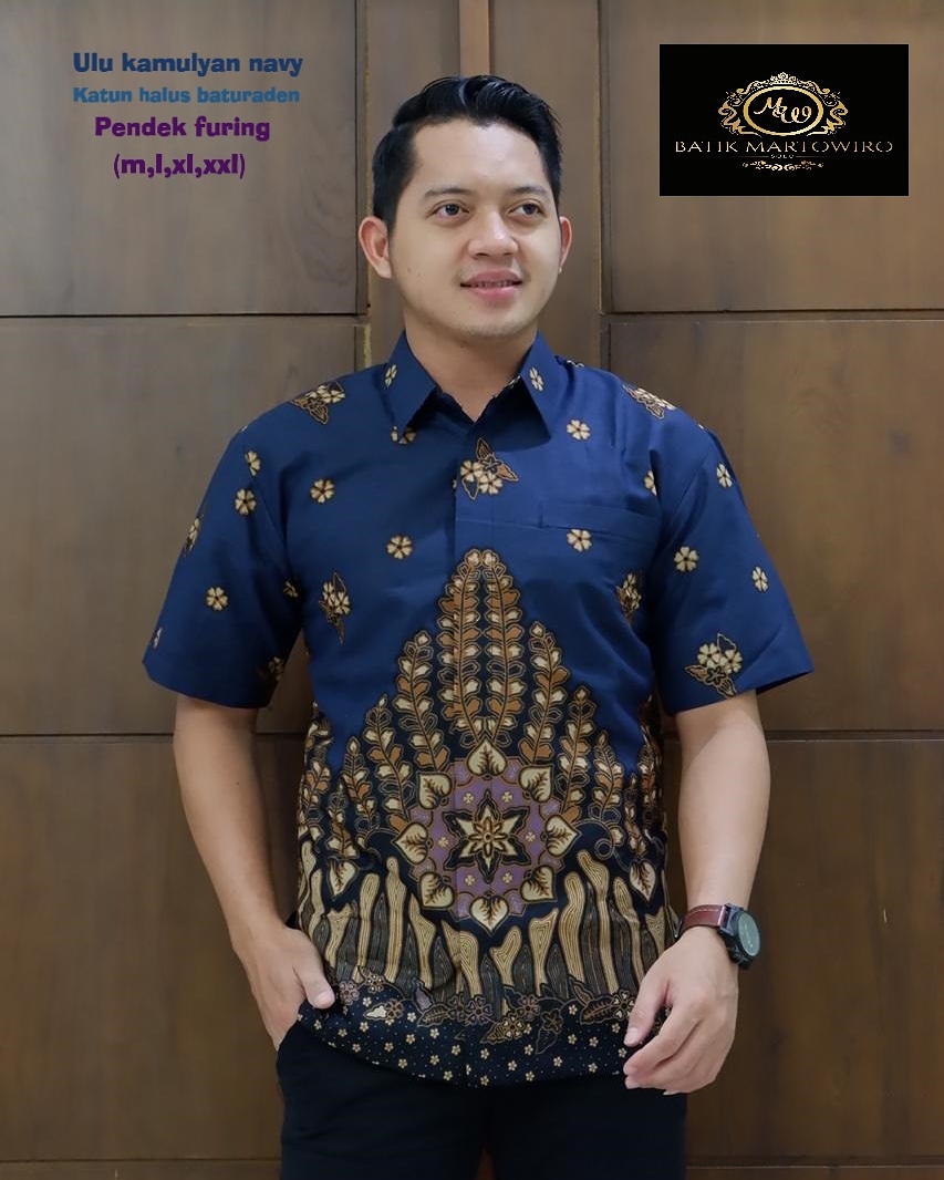 ULU KAMULYAN NAVY MARTOWIRO BATIKSOLOAMANAH KEMEJA BATIK PRIA SOLO LENGAN PENDEK LAPIS FURING KATUN