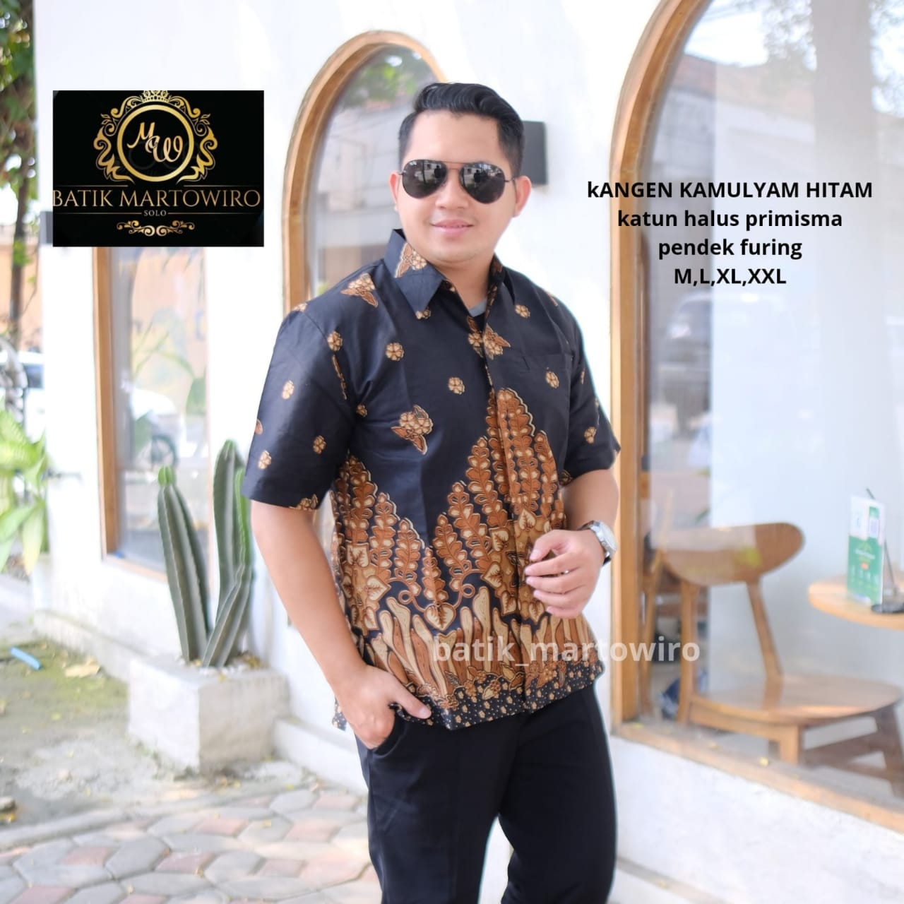 KANGEN KAMULYAN HITAM MARTOWIRO BATIKSOLOAMANAH KEMEJA BATIK PRIA SOLO LENGAN PENDEK LAPIS FURING KA