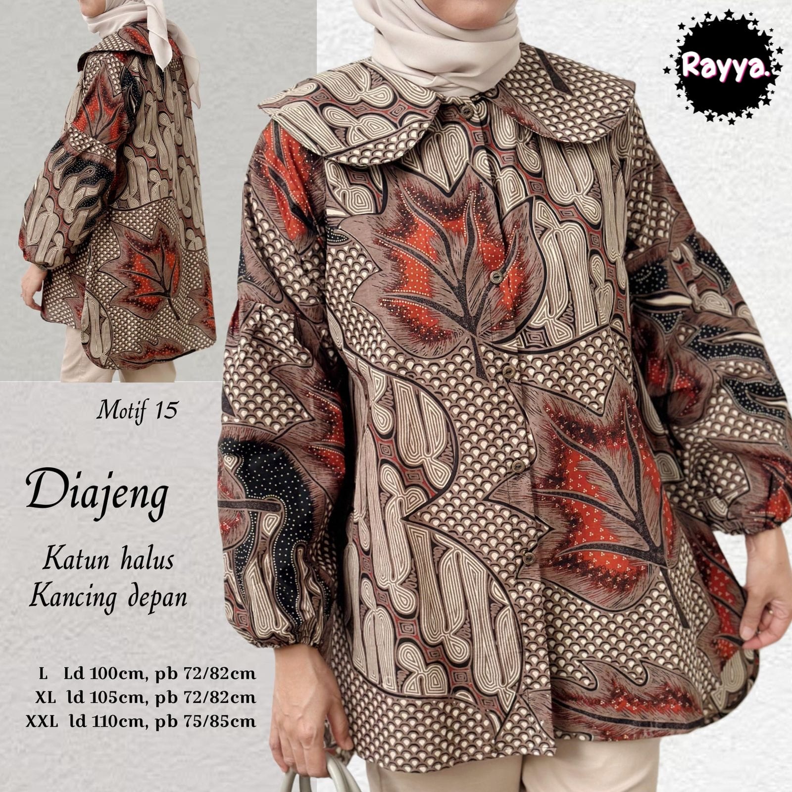 BLOUSE BATIK SOLO ARMBI TOP 6 130K RAYYA BATIKSOLOAMANAH BLUS KATUN PARIS PREMIUM MODERN