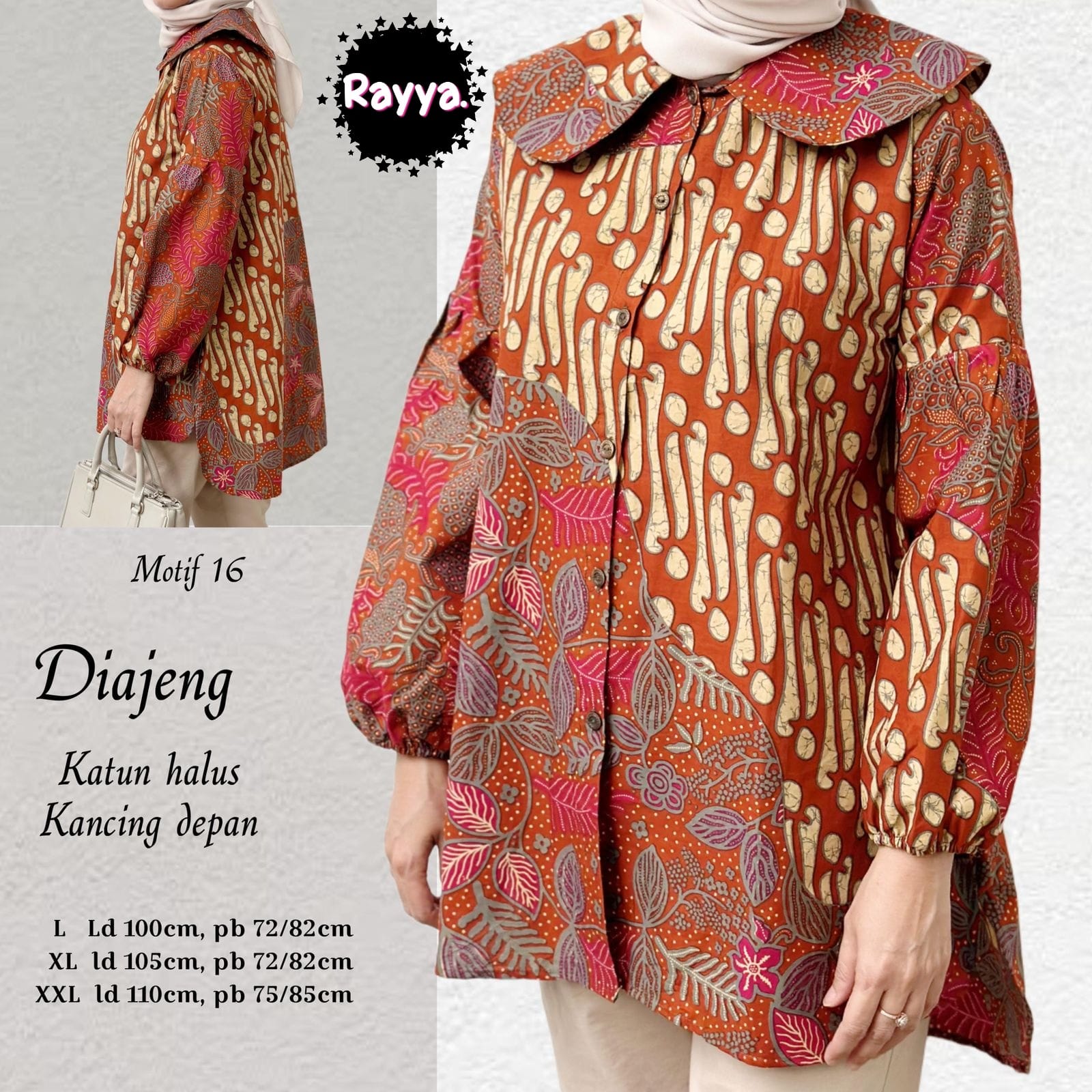 BLOUSE BATIK SOLO DIAJENG MOTIF 16 RAYYA BATIKSOLOAMANAH BLUS KATUN PREMIUM MODERN 145K