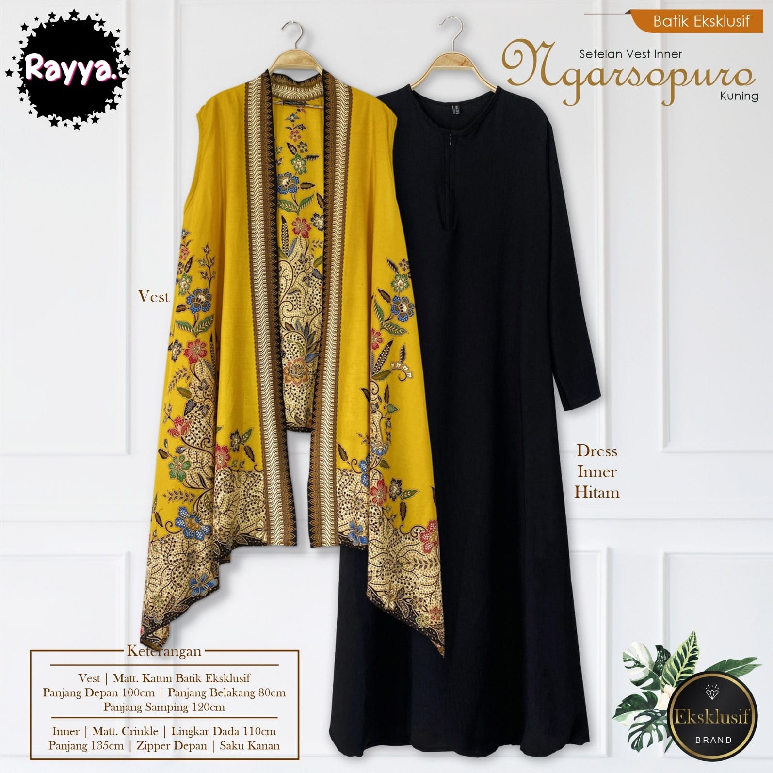 SETELAN VEST INNER NGARSOPURO KUNING RAYYA BATIKSOLOAMANAH KATUN PARIS PREMIUM MODERN