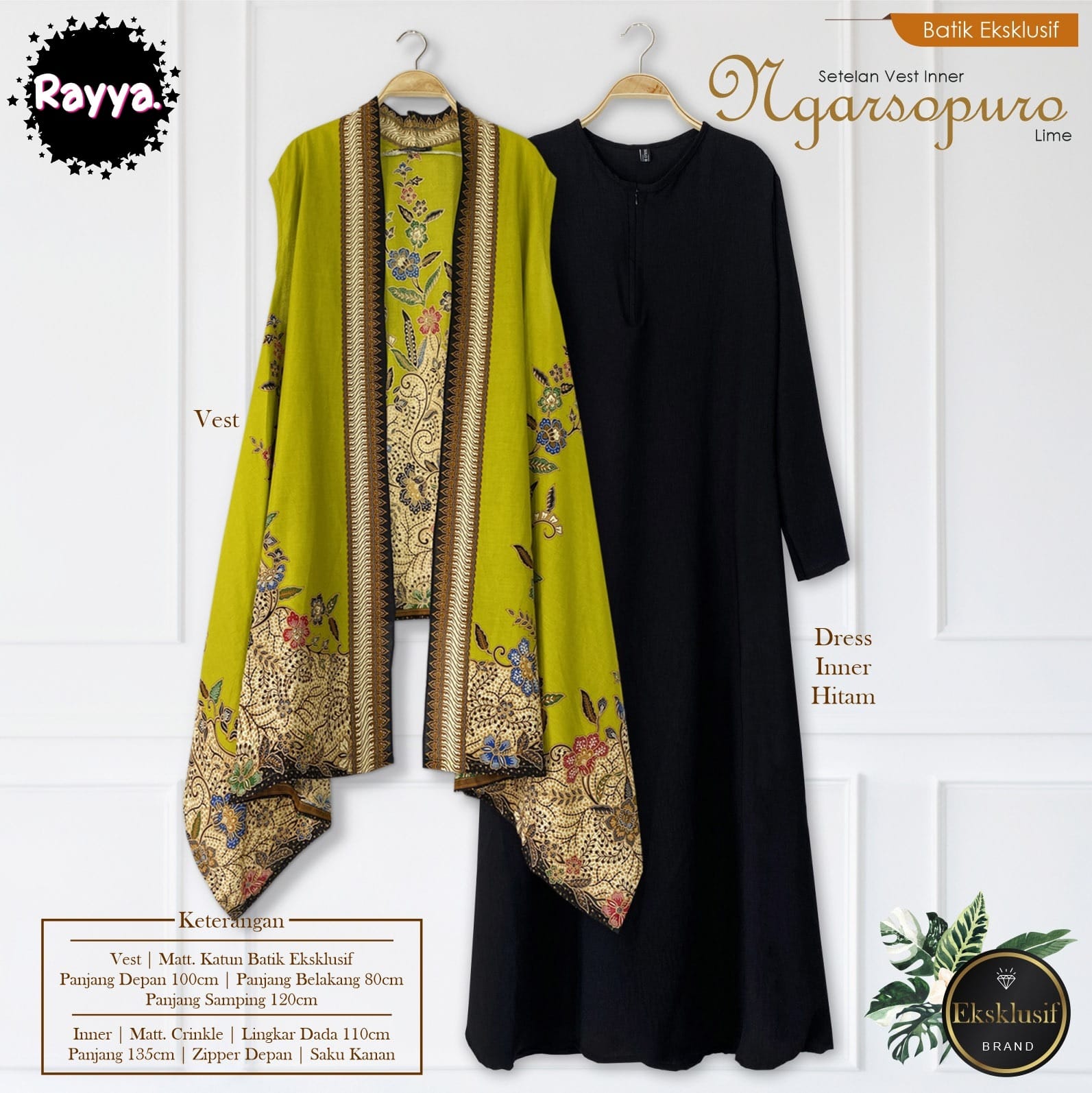 SETELAN VEST INNER NGARSOPURO LIME RAYYA BATIKSOLOAMANAH KATUN PARIS PREMIUM MODERN