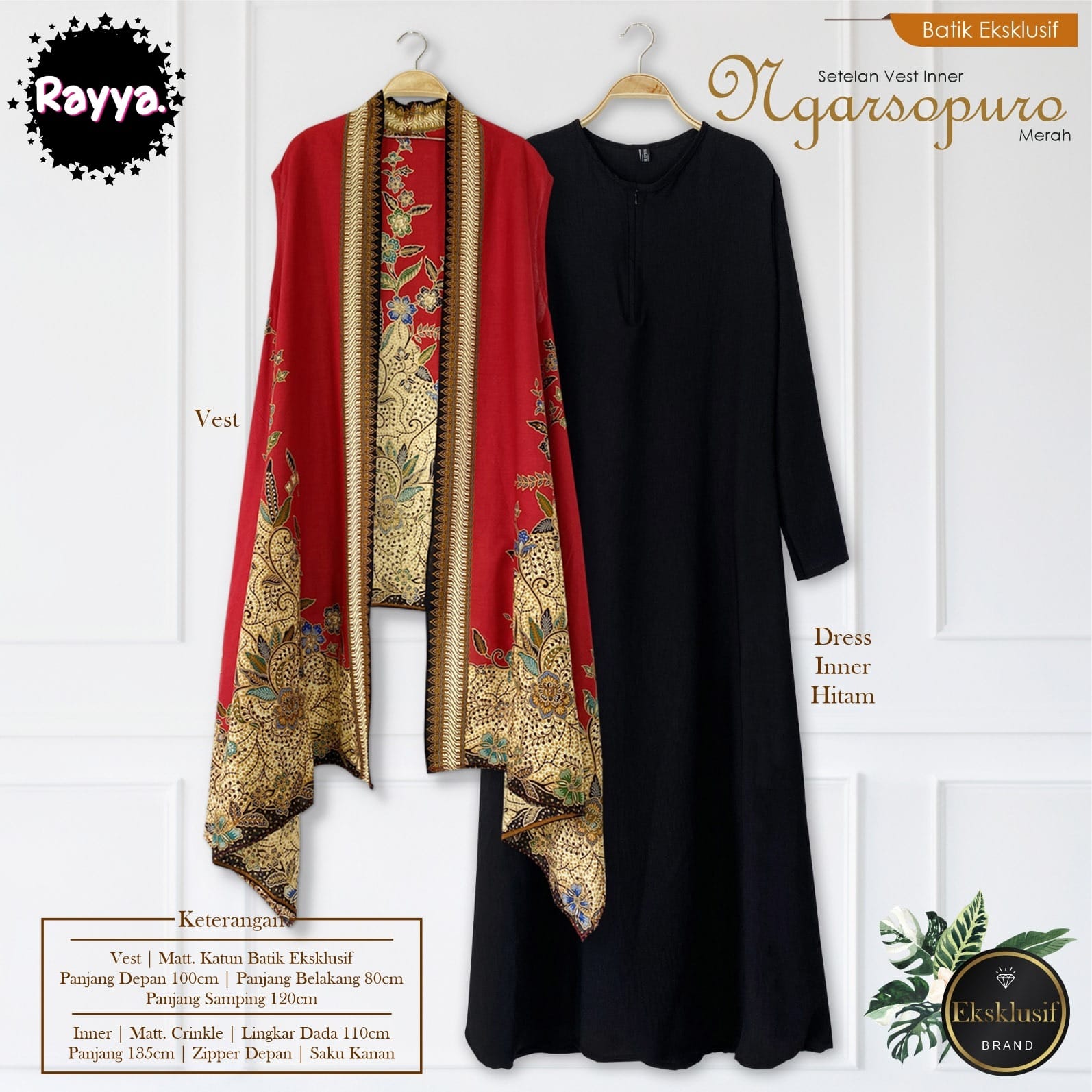 SETELAN VEST INNER NGARSOPURO MERAH RAYYA BATIKSOLOAMANAH KATUN PARIS PREMIUM MODERN