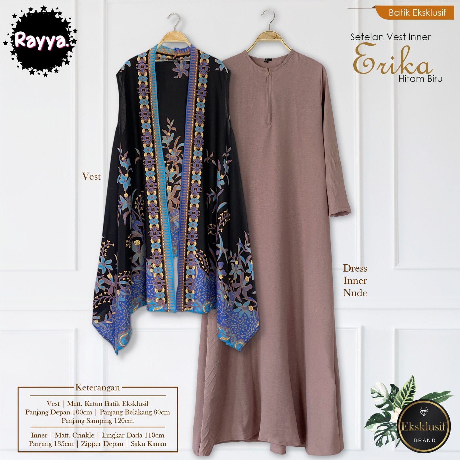 SETELAN VEST INNET ERIKA HITAM BIRU RAYYA BATIKSOLOAMANAH KATUN PARIS PREMIUM MODERN
