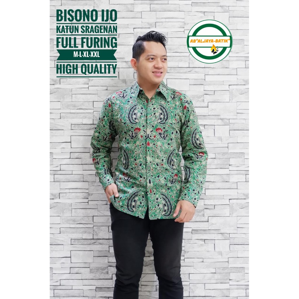 BISONO IJO BATIKSOLOAMANAH Kemeja Batik Pria Solo Lengan Panjang Pendek Lapis Furing