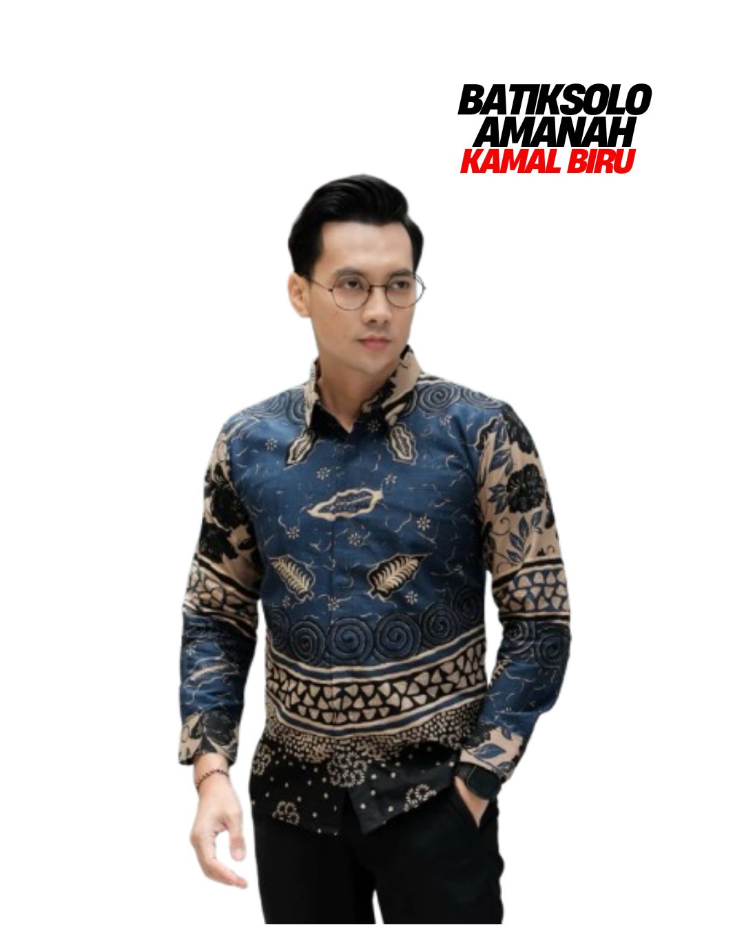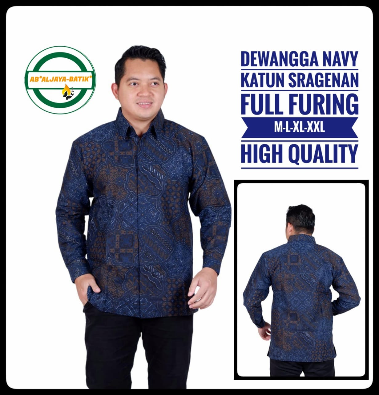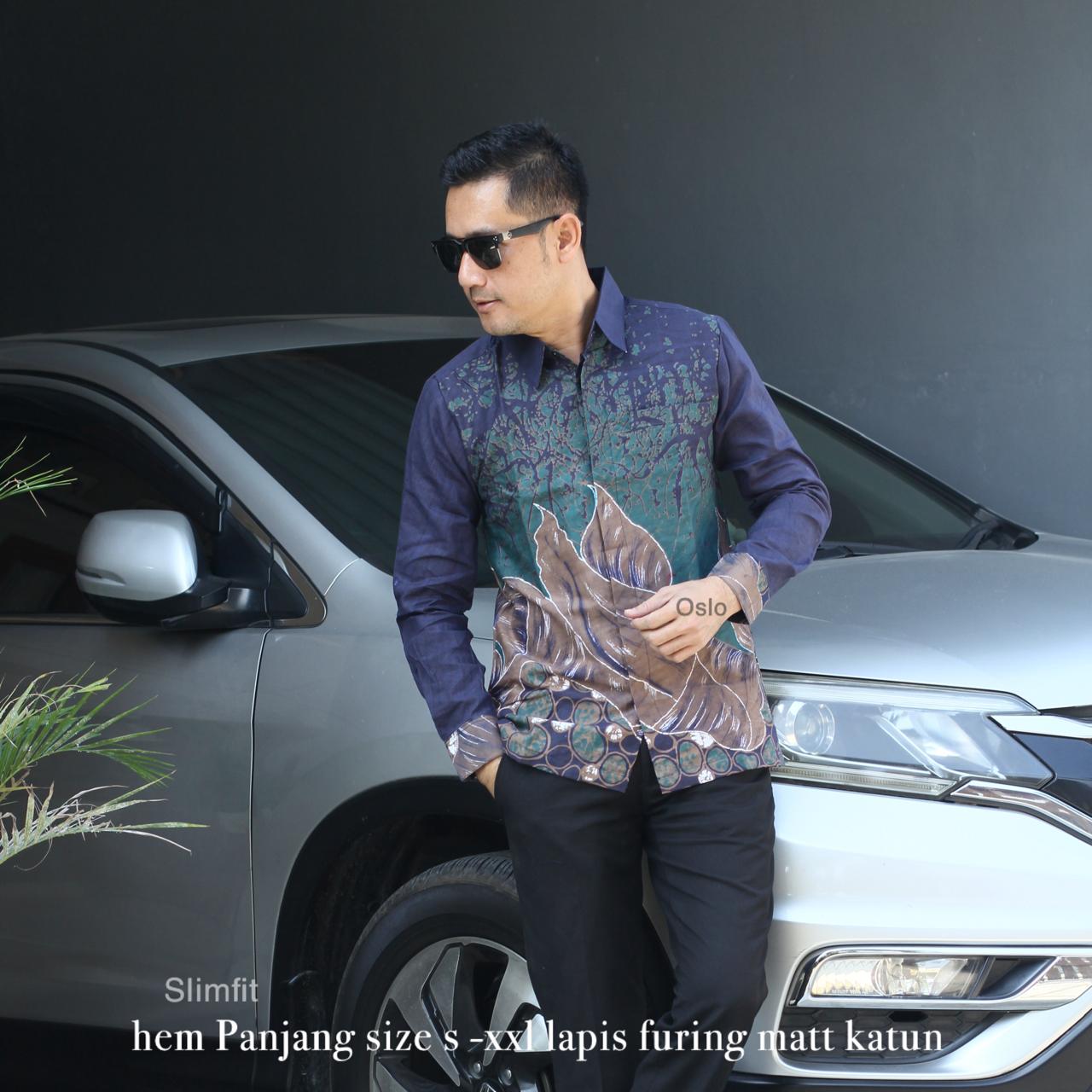 AFTANA NAVY BATIKSOLOAMANAH Kemeja Batik Pria Solo Lengan Panjang Pendek Lapis Furing