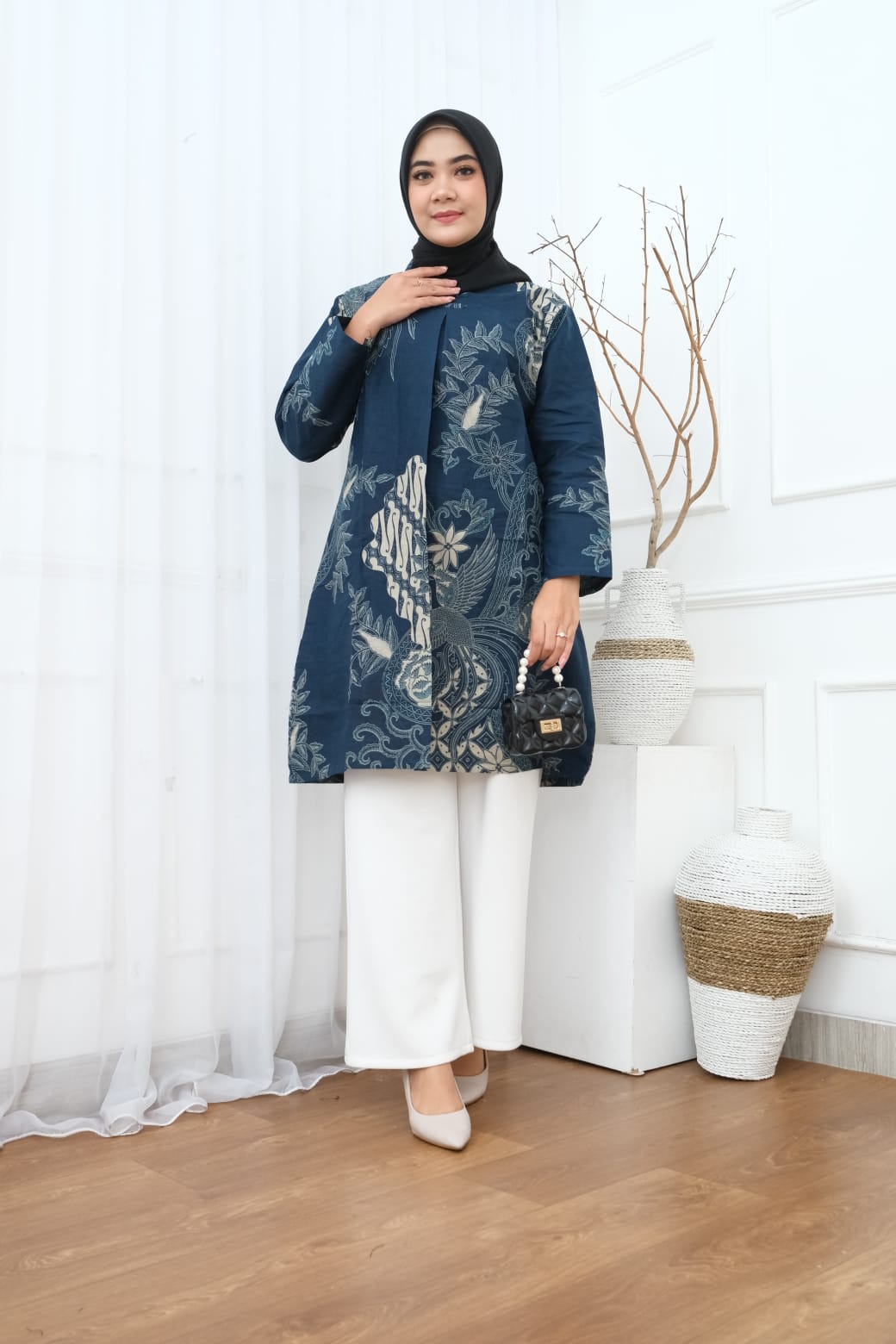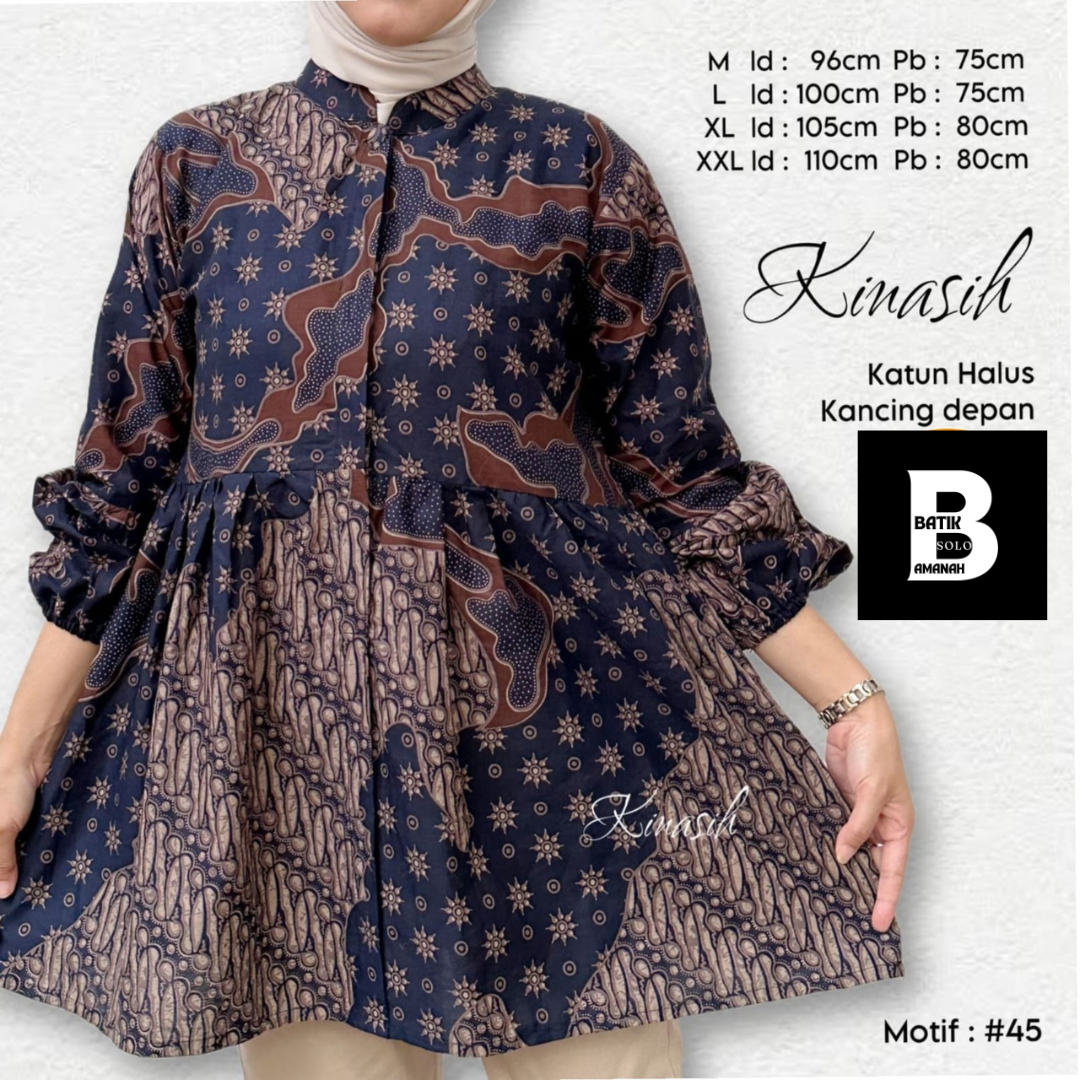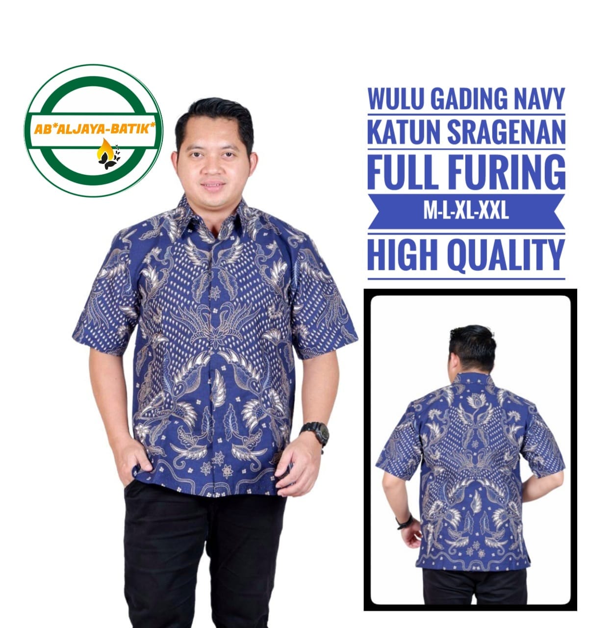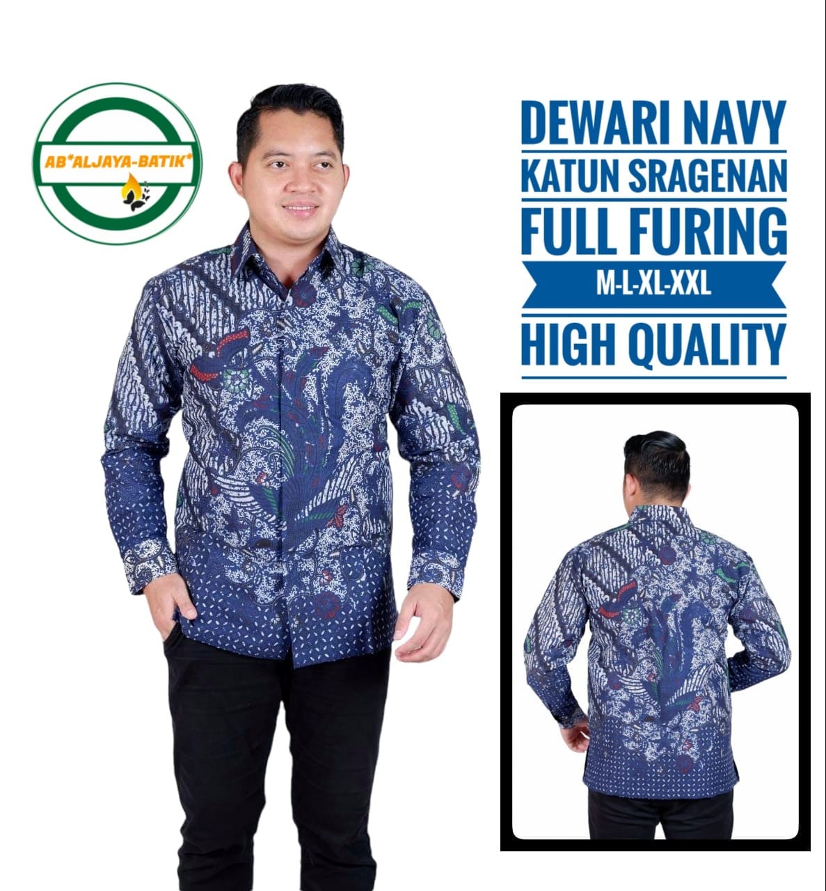 AFTANA NAVY BATIKSOLOAMANAH Kemeja Batik Pria Solo Lengan Panjang Pendek Lapis Furing