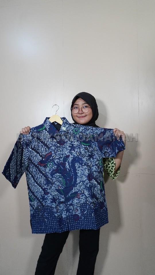 CENDRAWASIH NAVY BATIKSOLOAMANAH Kemeja Batik Pria Solo Lengan Panjang Pendek Lapis Furing