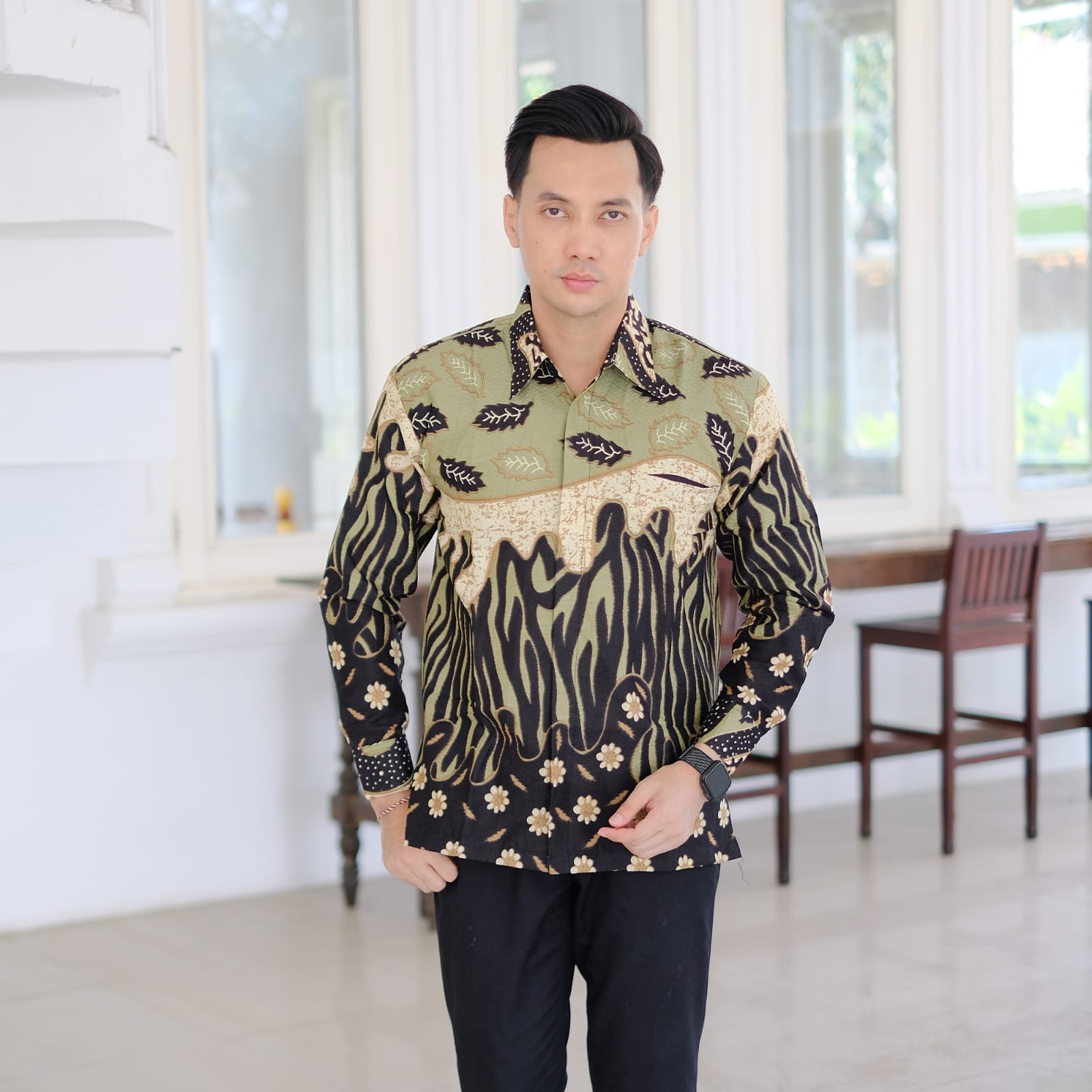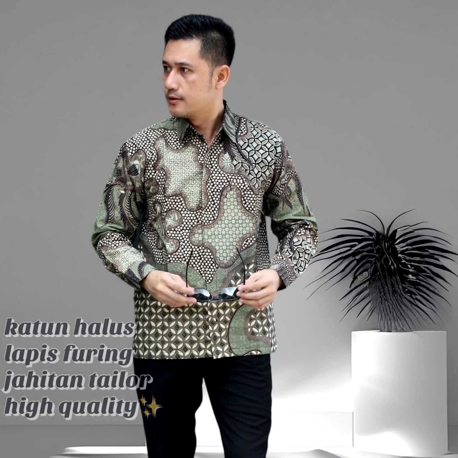 MLIWIS HIJAU BATIKSOLOAMANAH Kemeja Batik Pria Solo Lengan Panjang Pendek Lapis Furing