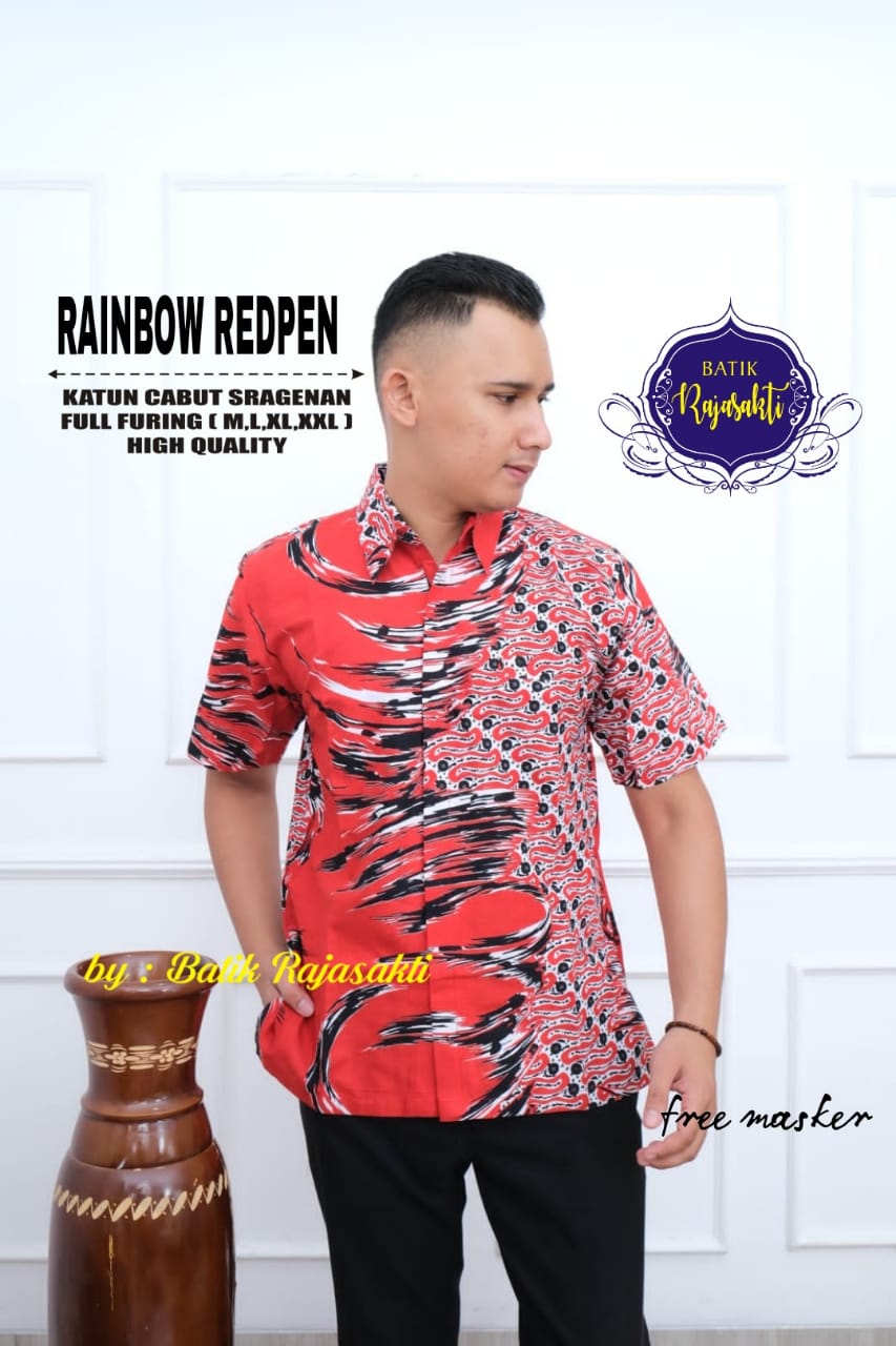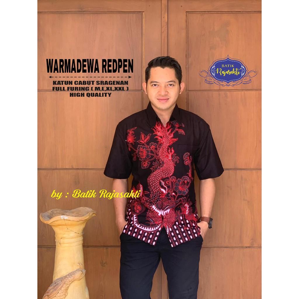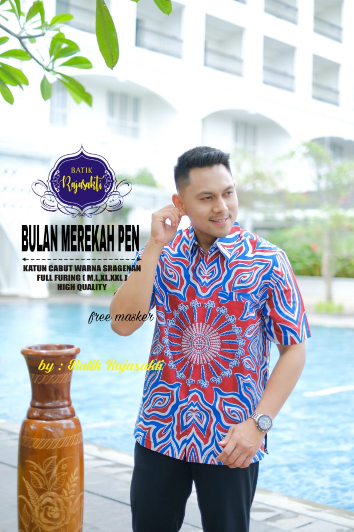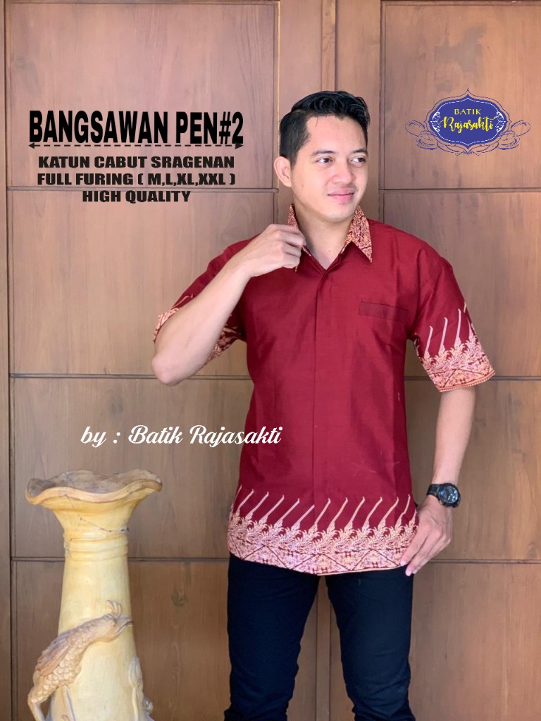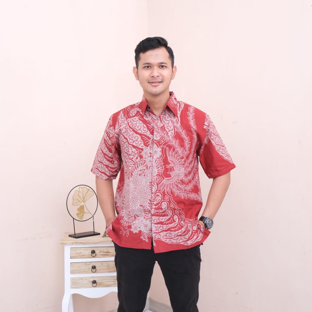 SANDIAGA RED 2 RAJASAKTI BATIKSOLOAMANAH KEMEJA BATIK PRIA SOLO LENGAN PENDEK LAPIS FURING