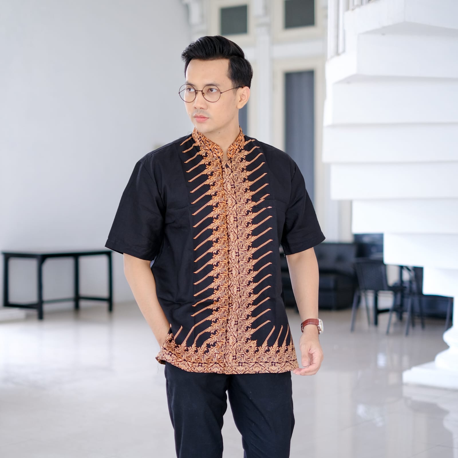 VIJAY HITAM ALJAYA KEMEJA BATIK PRIA SOLO LENGAN PANJANG LAPIS FURING BY BATIKSOLOAMANAH