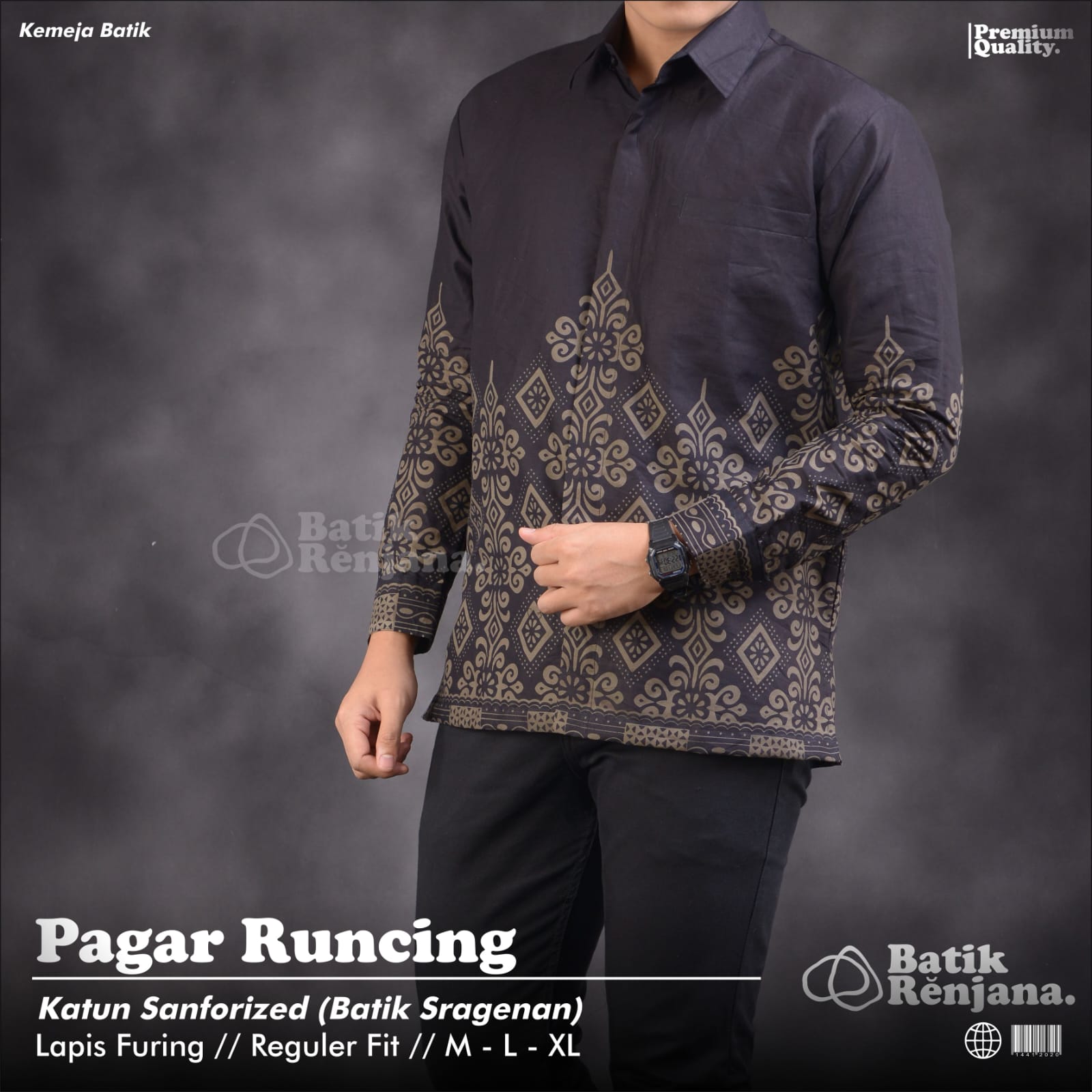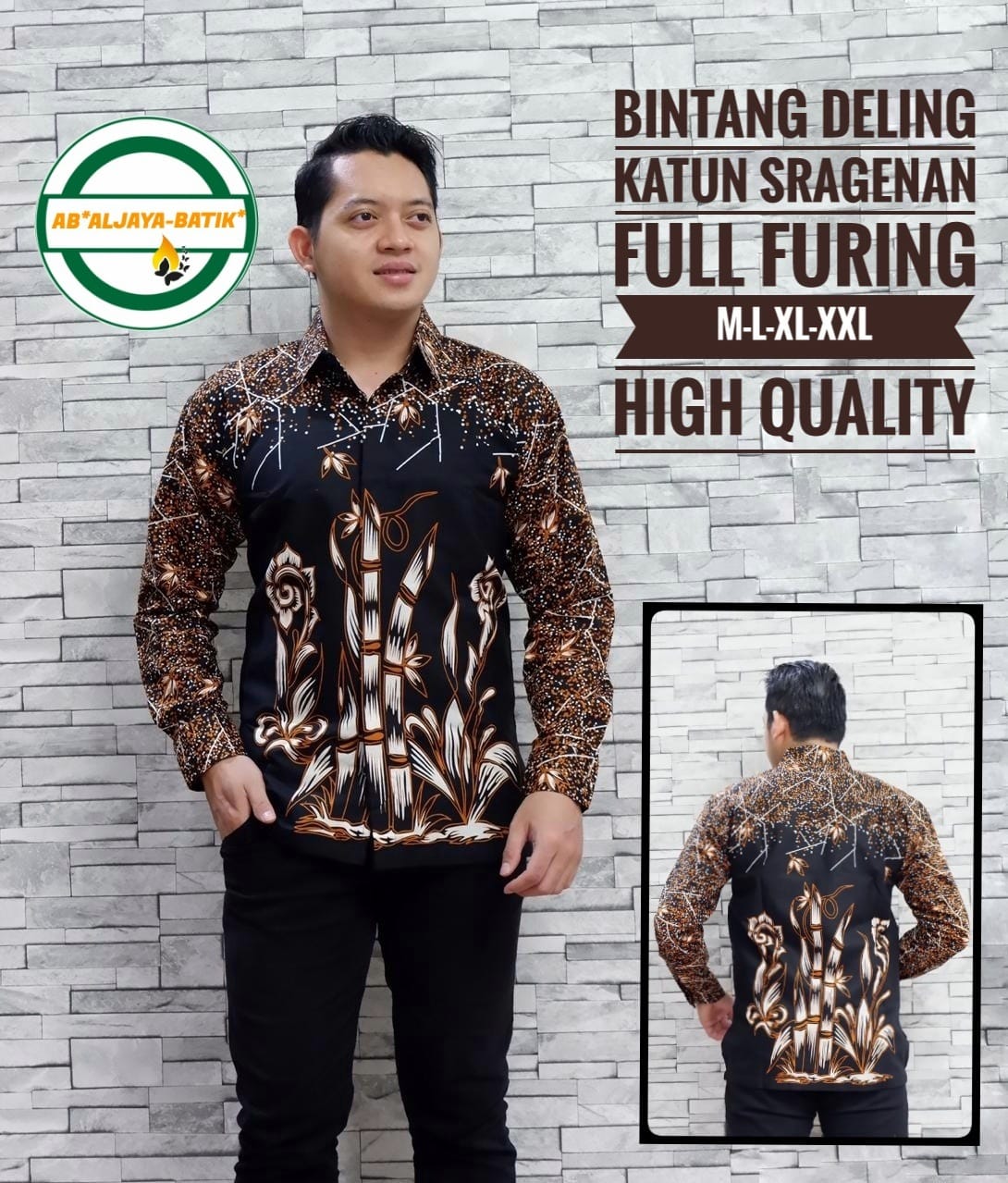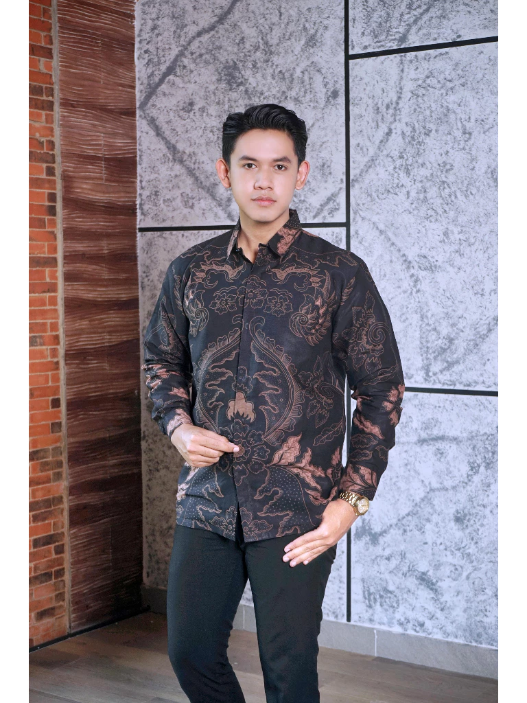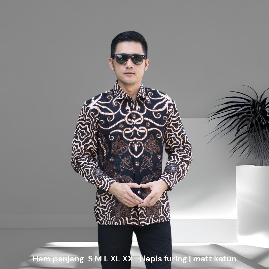 CENDRA HITAM ALJAYA KEMEJA BATIK PRIA SOLO LENGAN PANJANG LAPIS FURING BY BATIKSOLOAMANAH