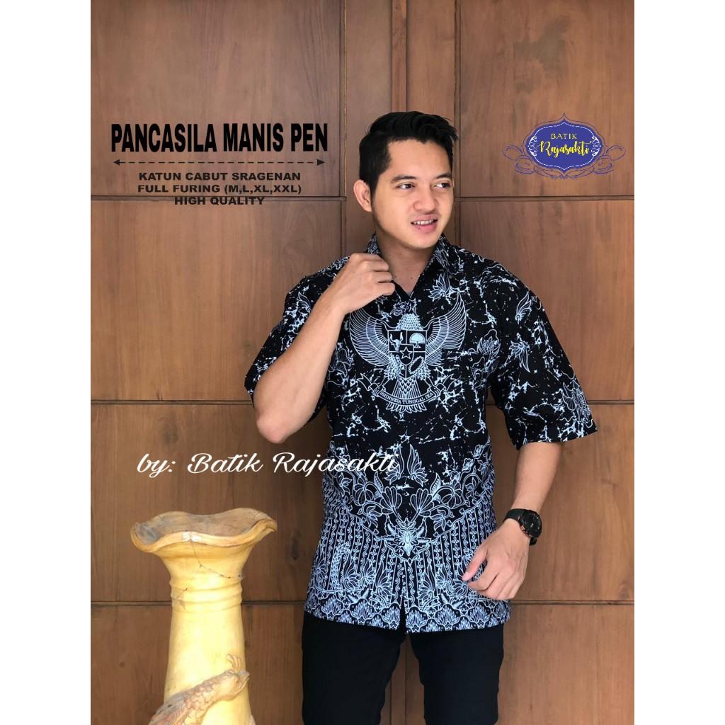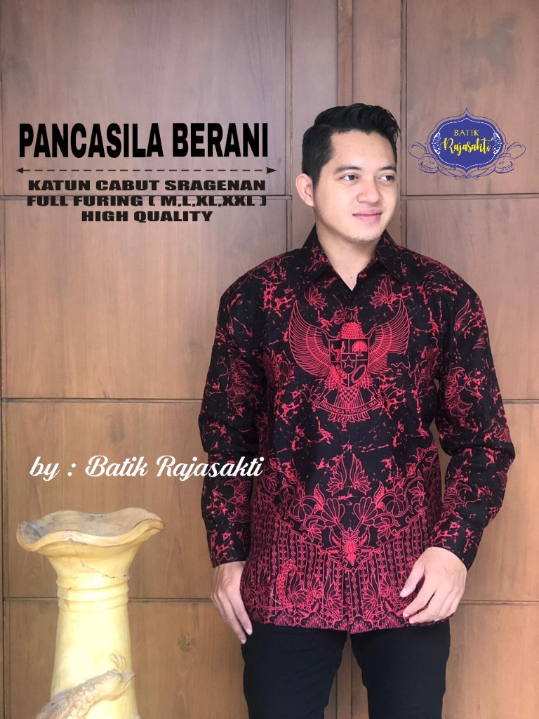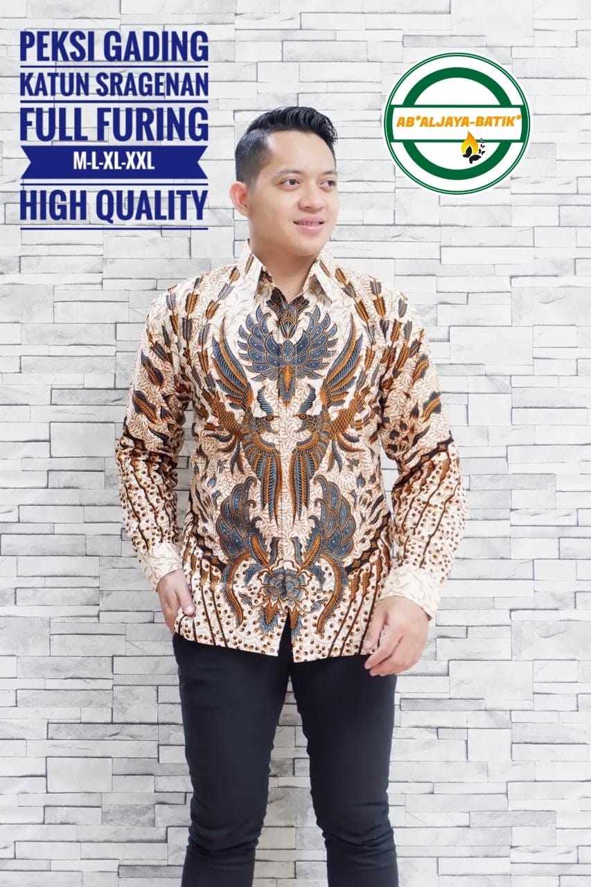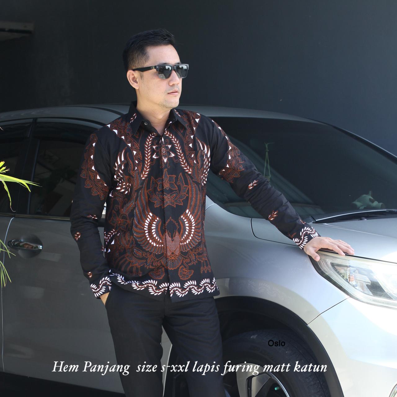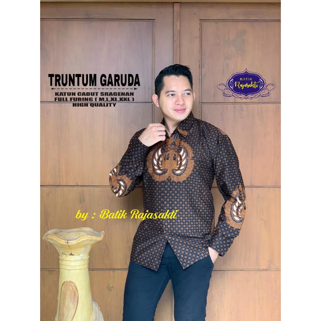 GARUDA PANCASILA BATIKSOLOAMANAH Kemeja Batik Pria Solo Lengan Panjang Lapis Furing