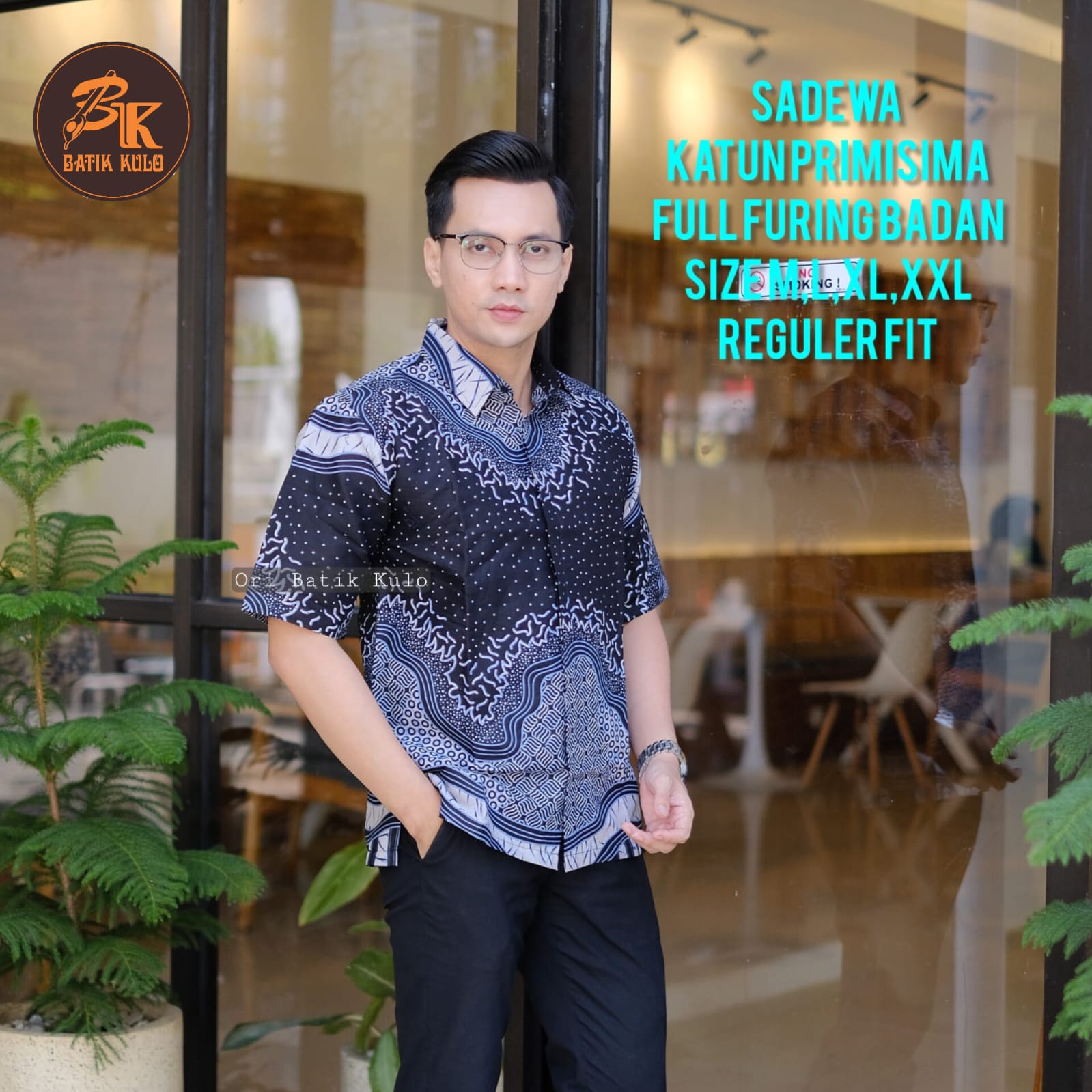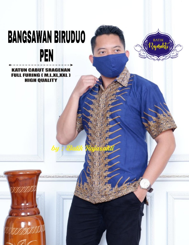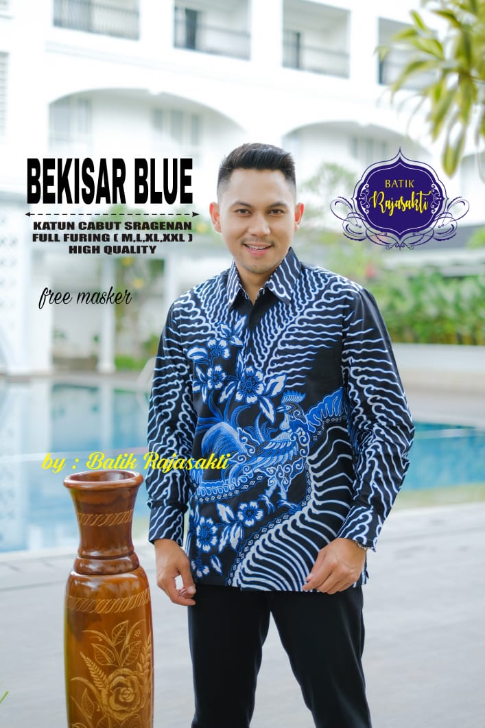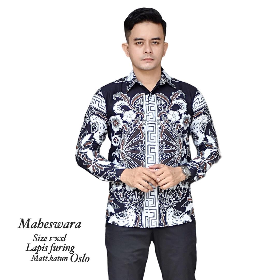 MAHADEWA BIRU BATIKSOLOAMANAH Kemeja Batik Pria Solo Lengan Panjang Pendek Lapis Furing