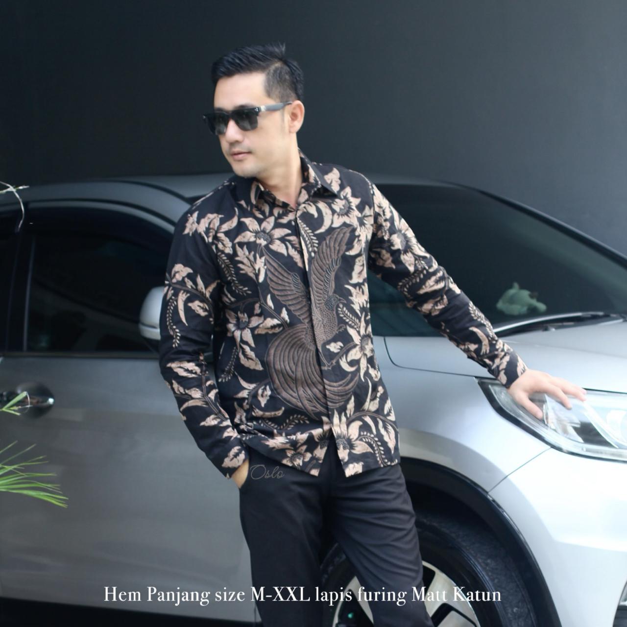 BAUREKSA HITAM ALJAYA KEMEJA BATIK PRIA SOLO LENGAN PANJANG LAPIS FURING BY BATIKSOLOAMANAH