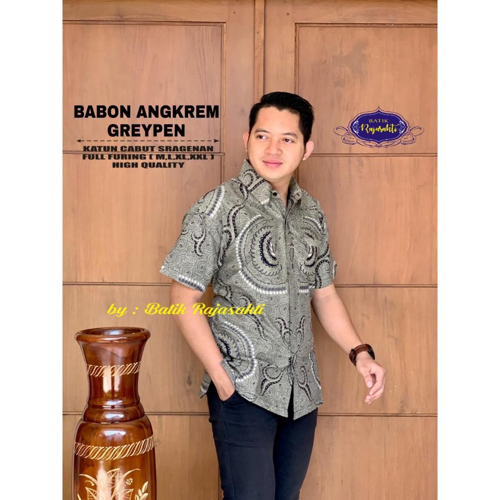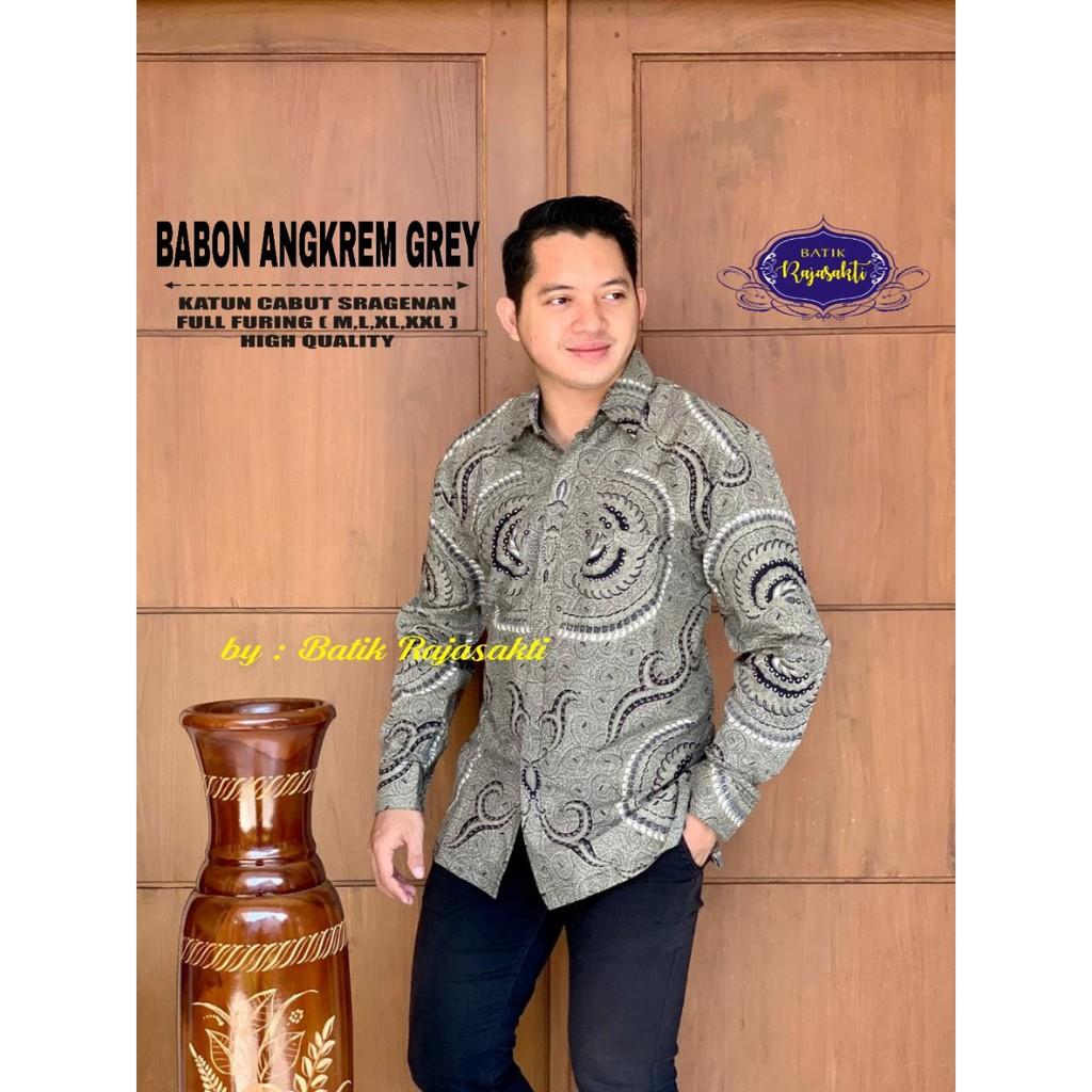 REKASA ABU ALJAYA KEMEJA BATIK PRIA SOLO LENGAN PANJANG LAPIS FURING BY BATIKSOLOAMANAH