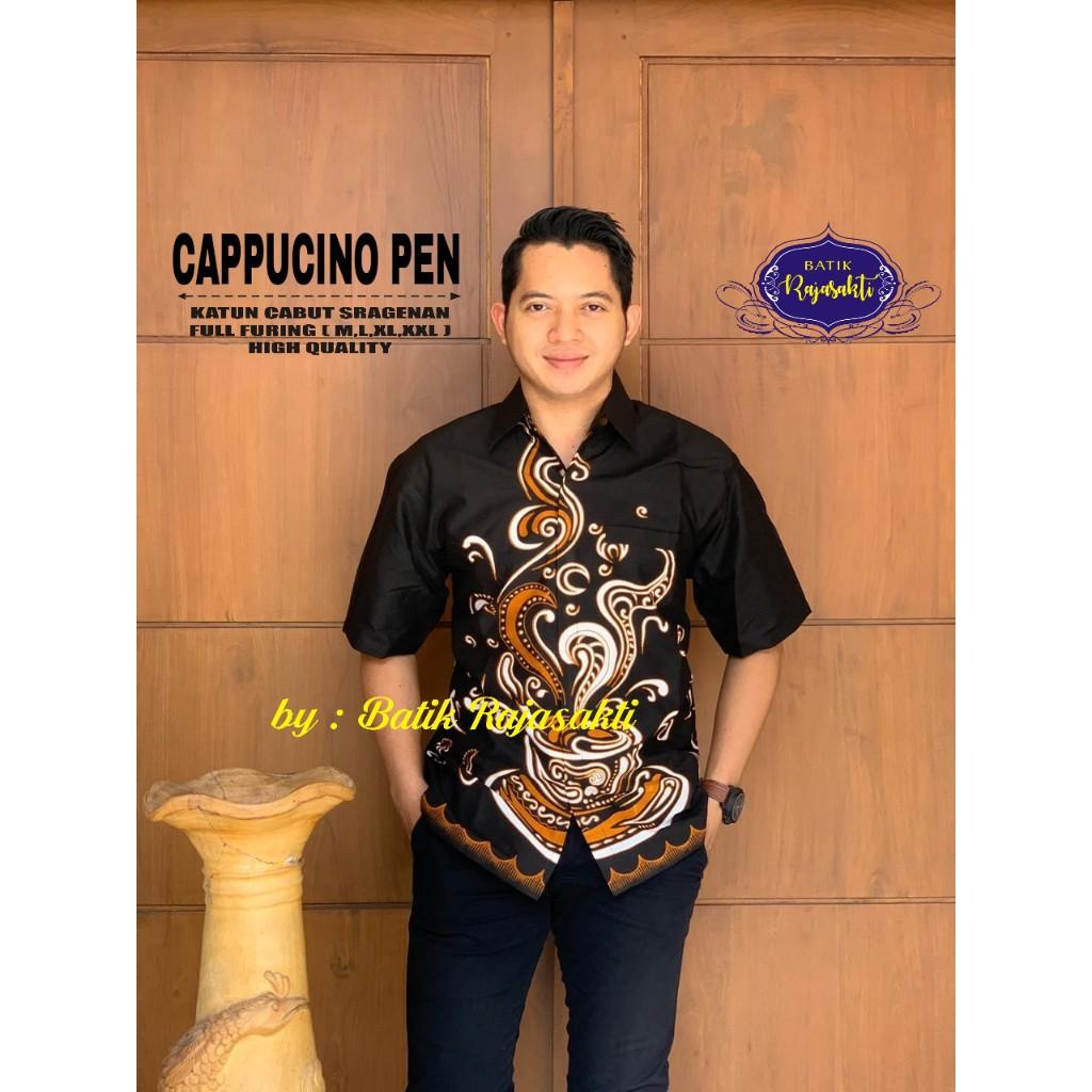 WHITE CAPPUCINOPEN RAJASAKTI BATIKSOLOAMANAH KEMEJA BATIK PRIA SOLO LENGAN PENDEK LAPIS FURING