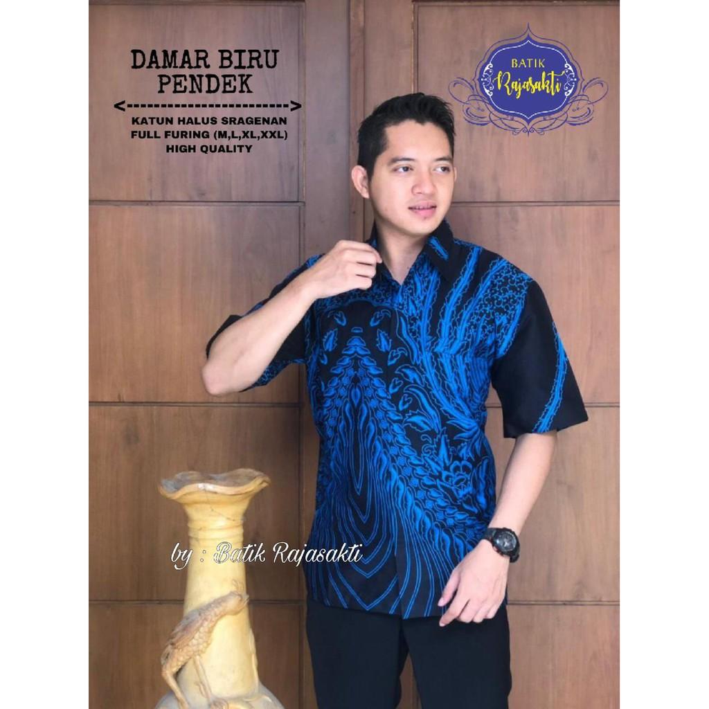AJI BIRU ALJAYA Kemeja Batik Pria Solo Lengan Pendek Lapis Furing