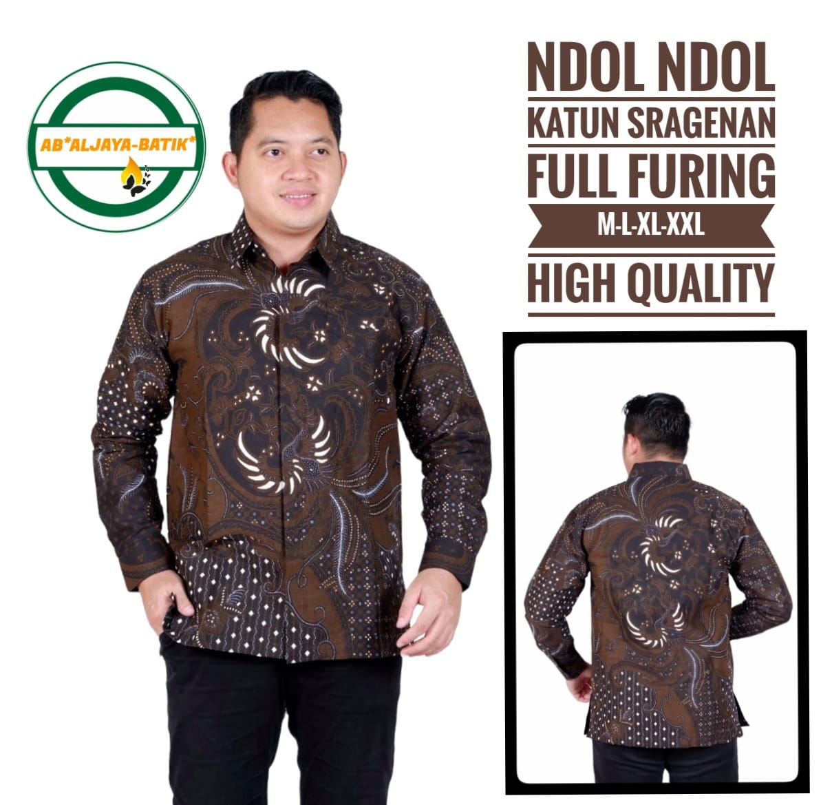 PINAYUNG SOGAN ALJAYA KEMEJA BATIK PRIA SOLO LENGAN PANJANG LAPIS FURING BY BATIKSOLOAMANAH