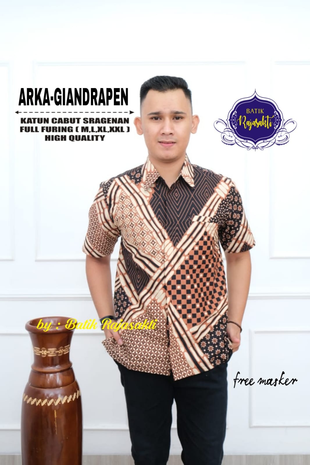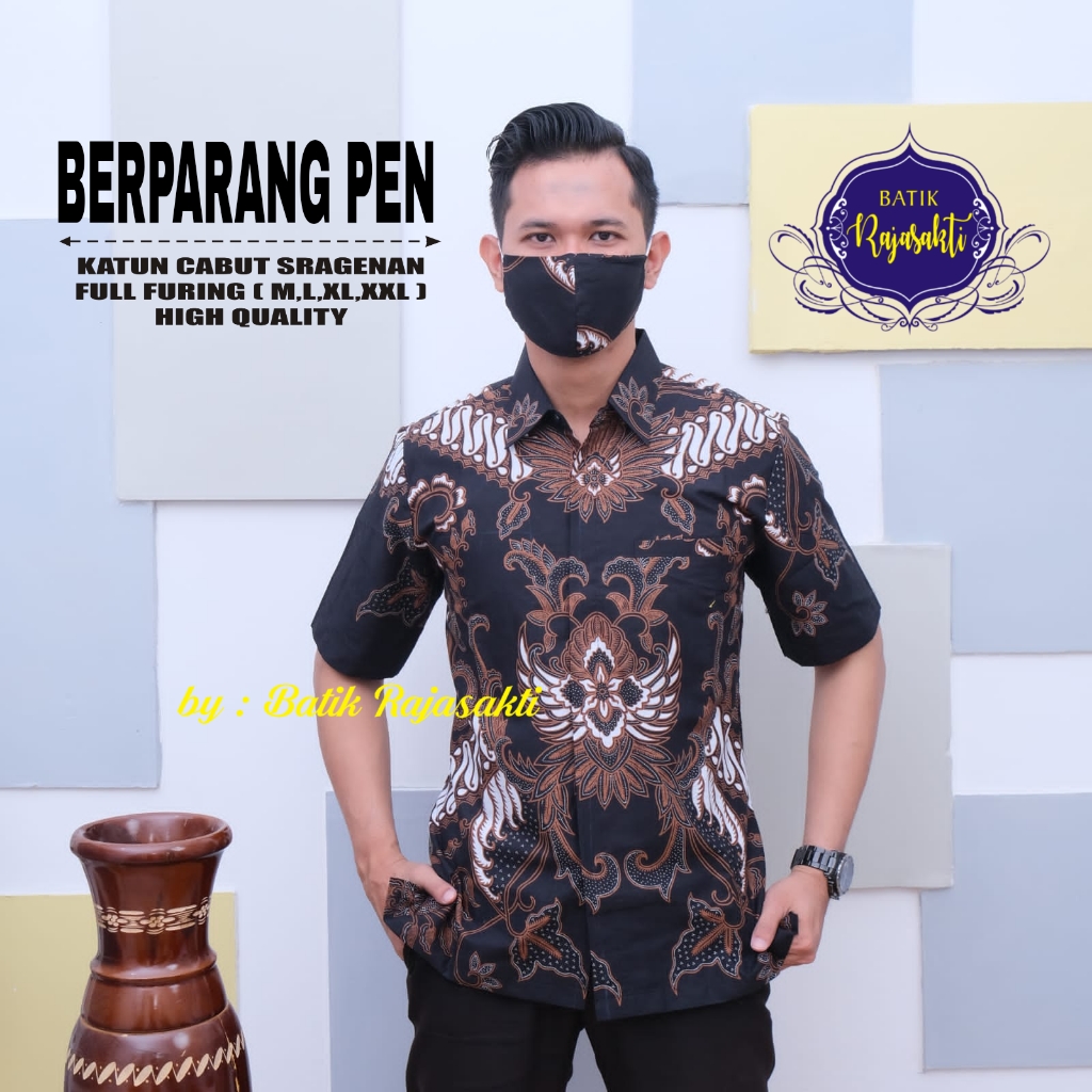 GODONGAN PEN RAJASAKTI BATIKSOLOAMANAH KEMEJA BATIK PRIA SOLO LENGAN PENDEK LAPIS FURING