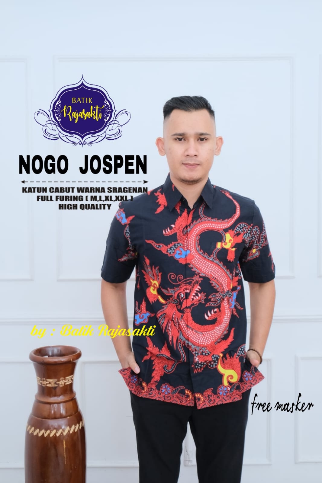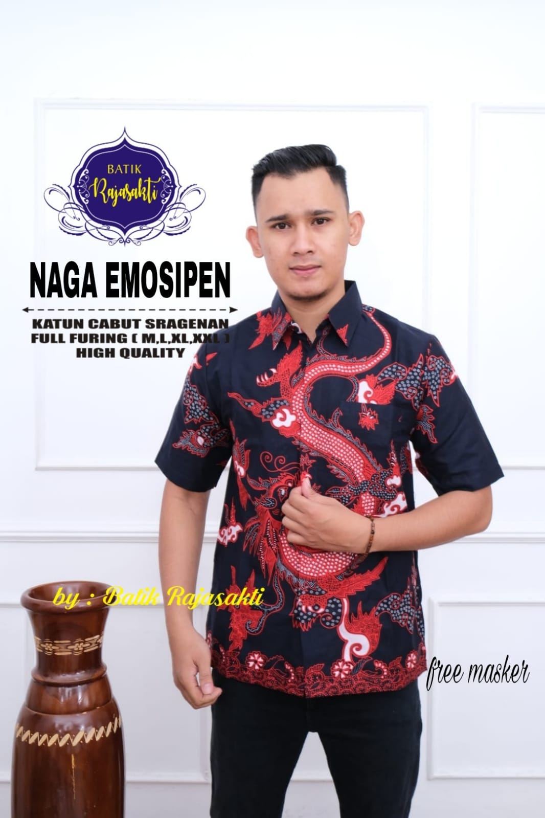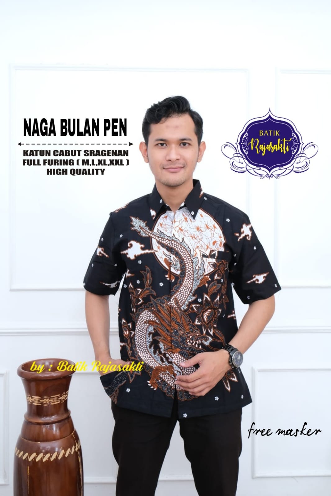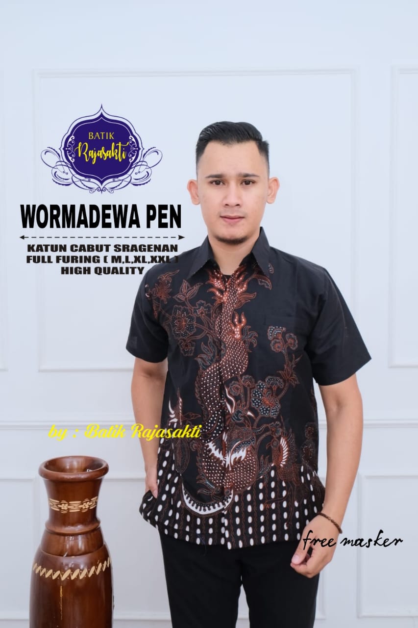 WAYANG NAGA PEN RAJASAKTI BATIKSOLOAMANAH KEMEJA BATIK PRIA SOLO LENGAN PENDEK LAPIS FURING