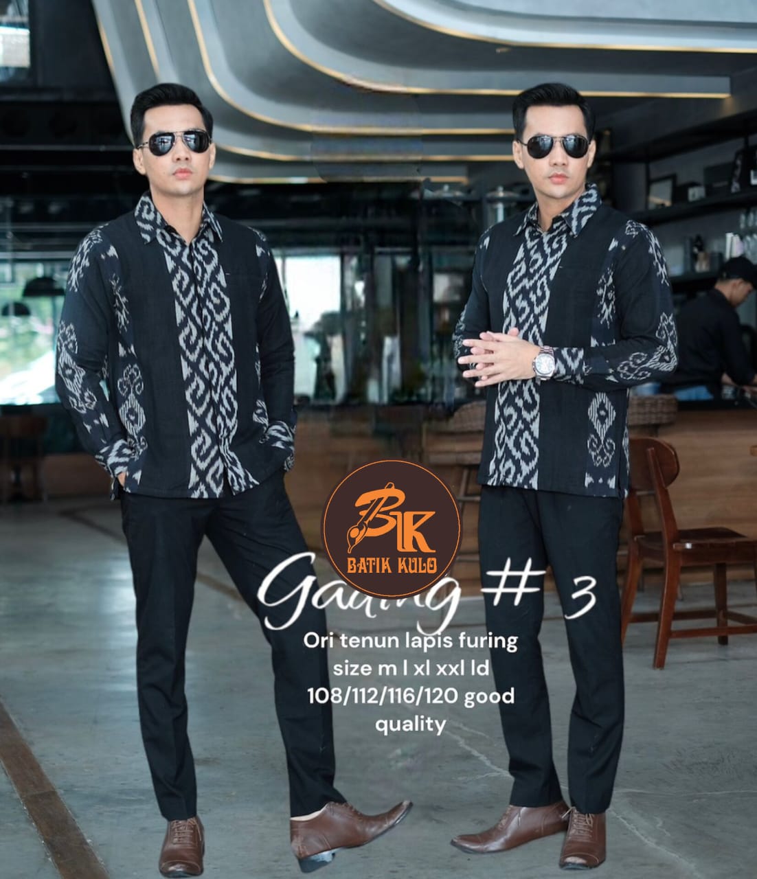 LURIK GANJAR BATIKSOLOAMANAH Kemeja Batik Pria Solo Lengan Panjang Lapis Furing