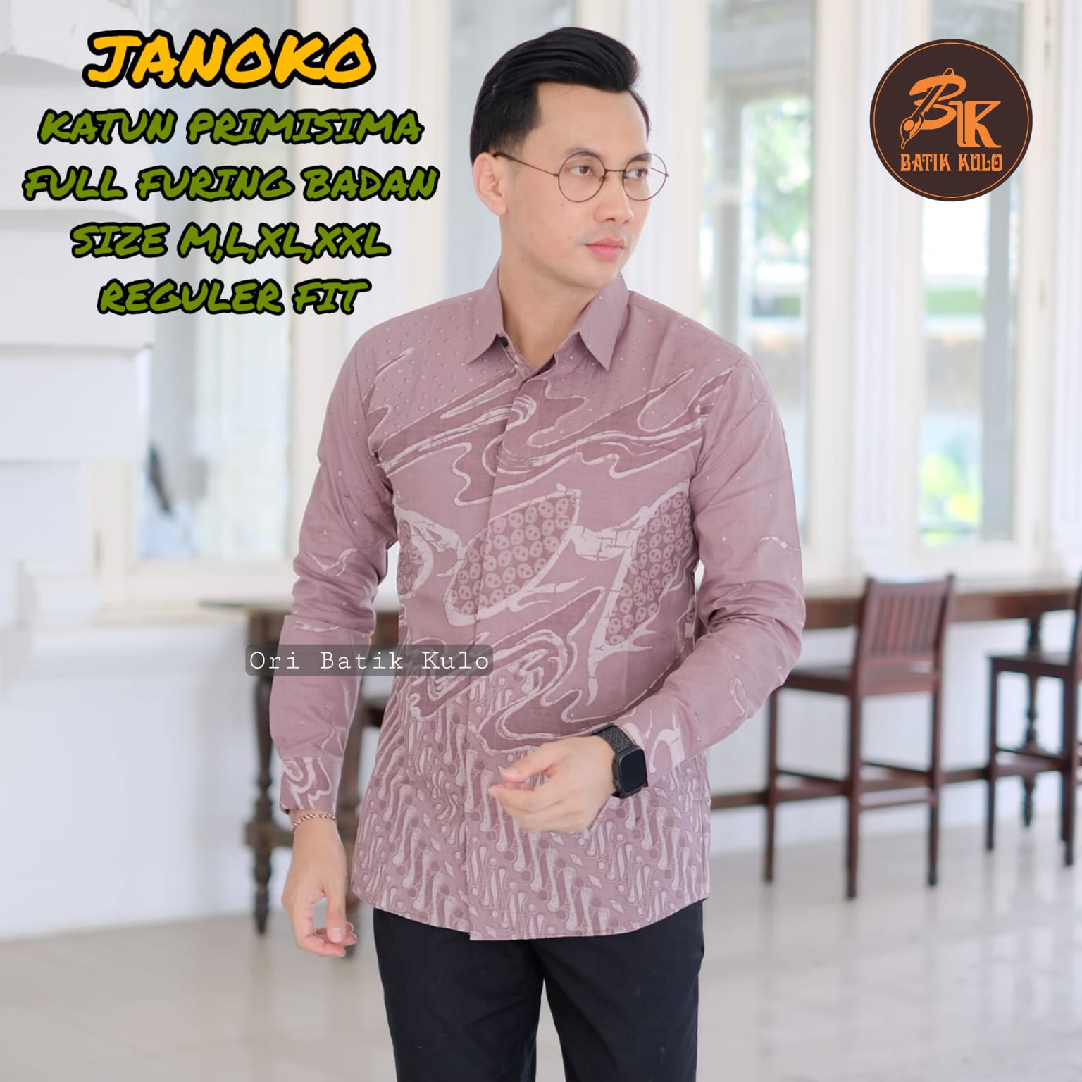 JANOKO BATIKSOLOAMANAH Kemeja Batik Pria Solo Lengan Panjang Pendek Lapis Furing