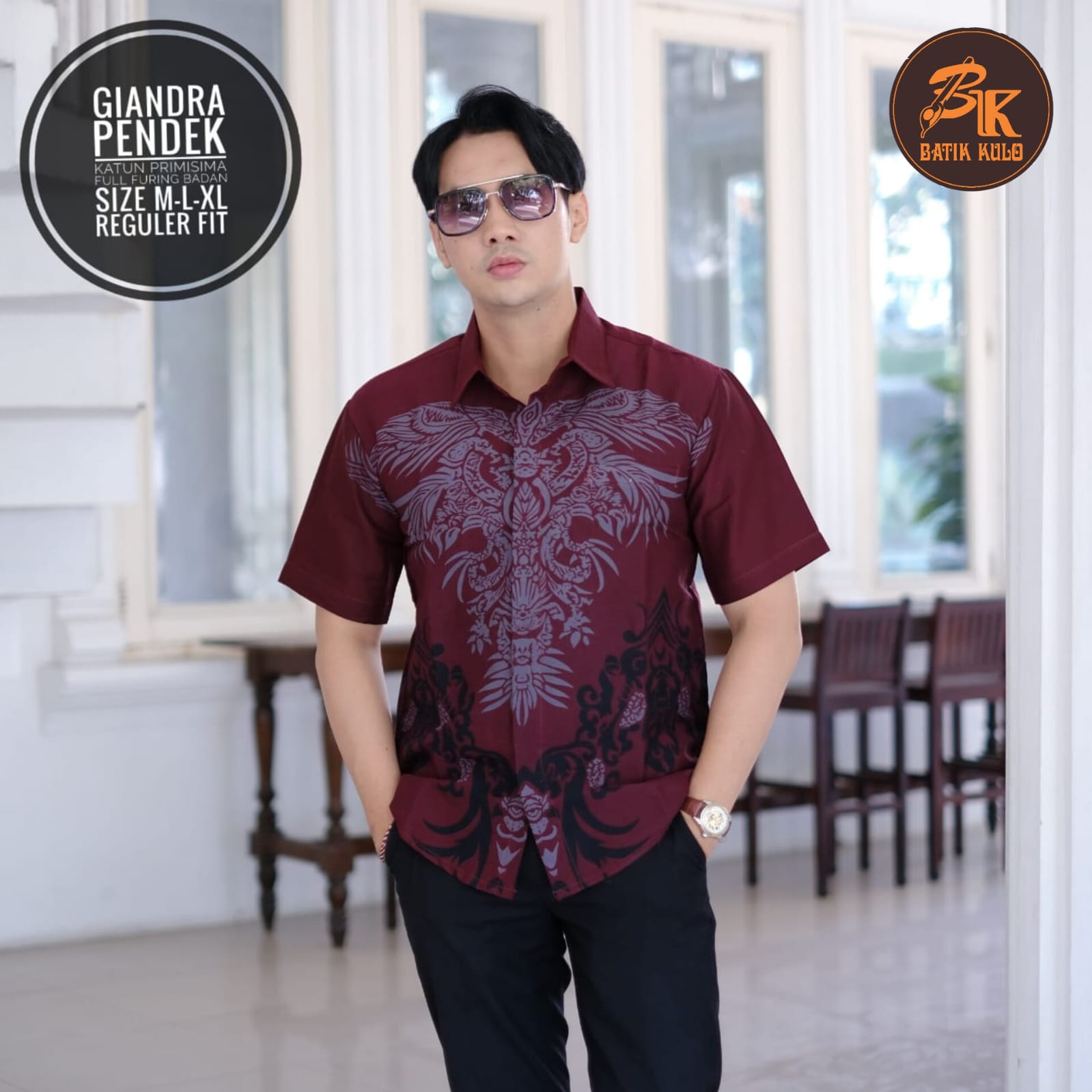 SANDIAGA RED RAJASAKTI BATIKSOLOAMANAH KEMEJA BATIK PRIA SOLO LENGAN PENDEK LAPIS FURING