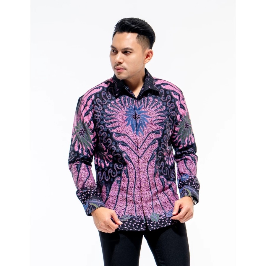 GITARJA UNGU BATIKSOLOAMANAH Kemeja Batik Pria Solo Lengan Panjang Lapis Furing