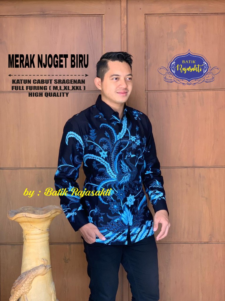 MERAK BIRU ALJAYA KEMEJA BATIK PRIA SOLO LENGAN PANJANG LAPIS FURING BY BATIKSOLOAMANAH