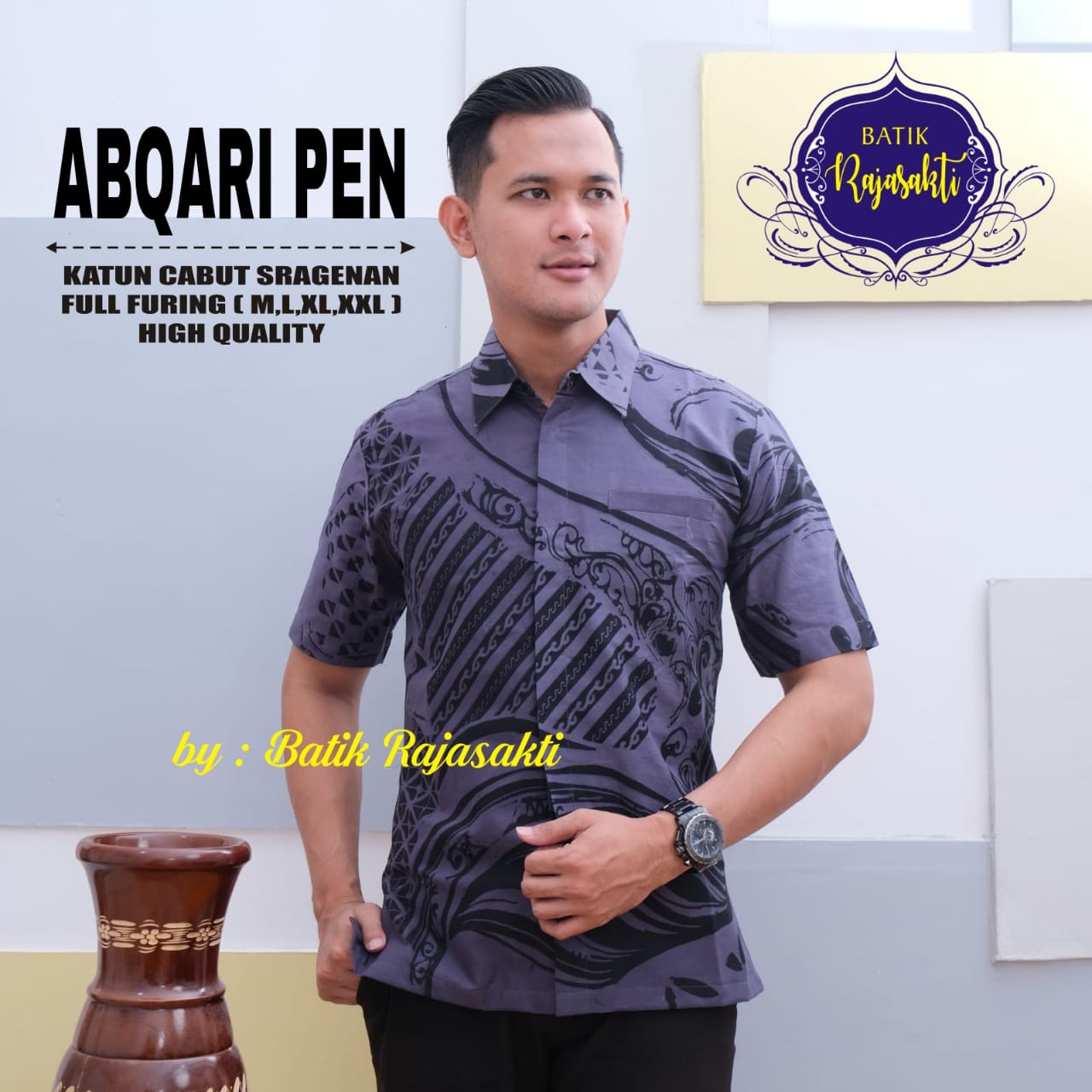 WAHYUJAYA AYU RAJASAKTI BATIKSOLOAMANAH KEMEJA BATIK PRIA SOLO LENGAN PENDEK LAPIS FURING