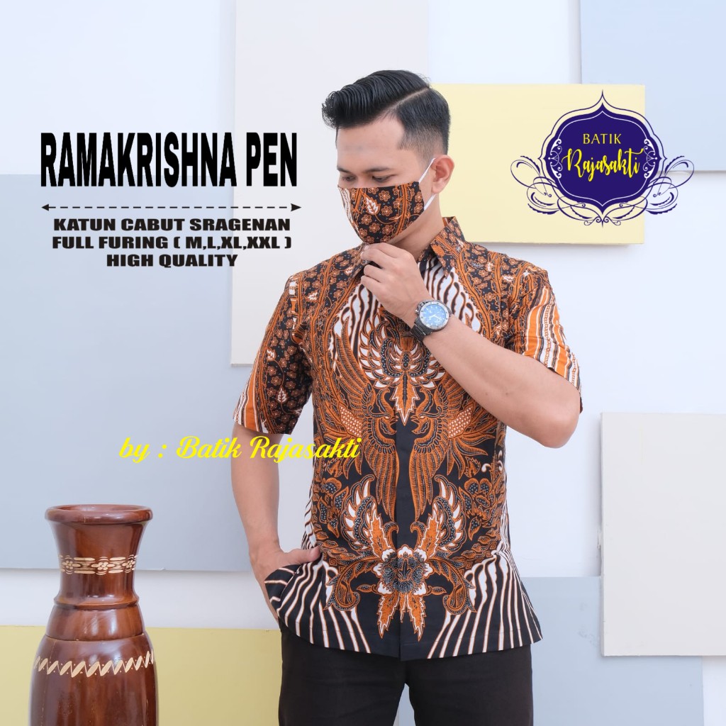 FADEYESO PEN2 RAJASAKTI BATIKSOLOAMANAH KEMEJA BATIK PRIA SOLO LENGAN PENDEK LAPIS FURING