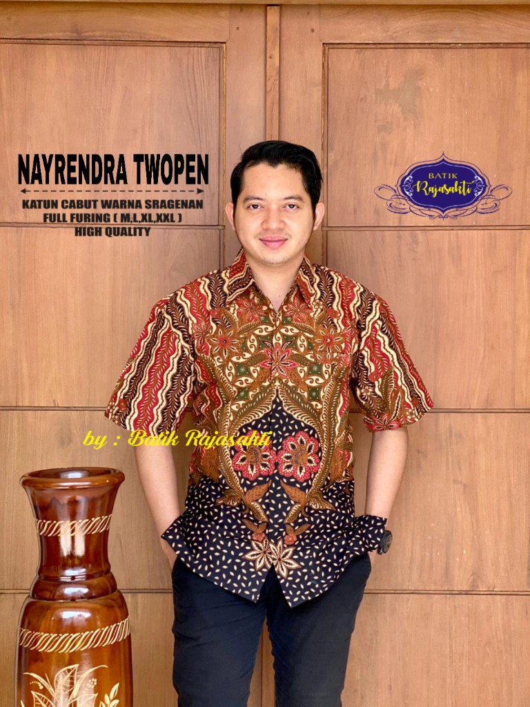 NAYRENDRA TWOPEN RAJASAKTI BATIKSOLOAMANAH KEMEJA BATIK PRIA SOLO LENGAN PENDEK LAPIS FURING