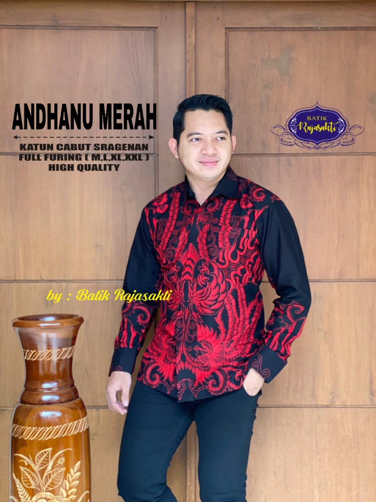 ANDHANU MERAH RAJASAKTI BATIKSOLOAMANAH KEMEJA BATIK PRIA SOLO LENGAN PANJANG LAPIS FURING