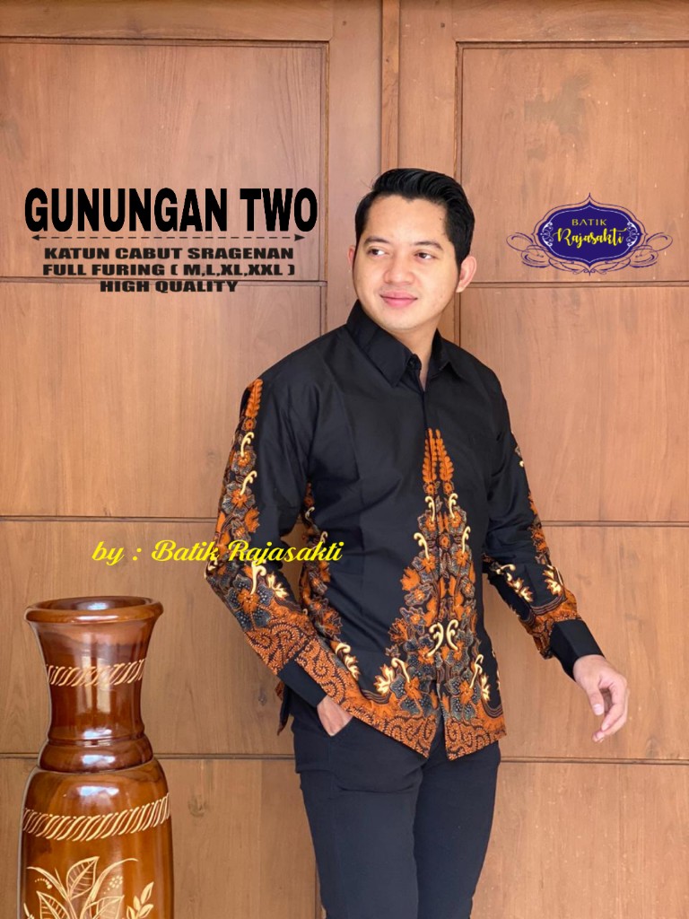 GUNUNGAN TWO RAJASAKTI BATIKSOLOAMANAH KEMEJA BATIK PRIA SOLO LENGAN PANJANG LAPIS FURING